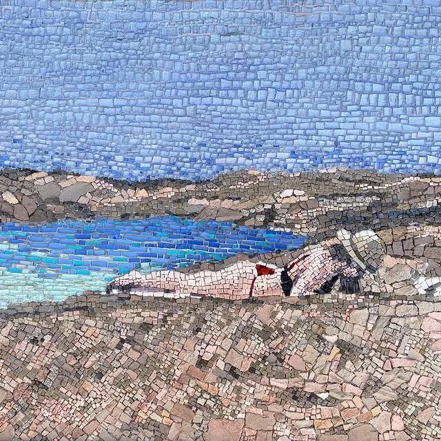 介绍了这么多马赛克相关信息,自然是要为大家介绍一位善于制作马赛克画作的艺术家,这位艺术家的名字叫林利雅·科维娜,是一位来自澳大利亚的艺术家,她制作马赛克画作的材料主要是玻璃、石子和瓷砖。