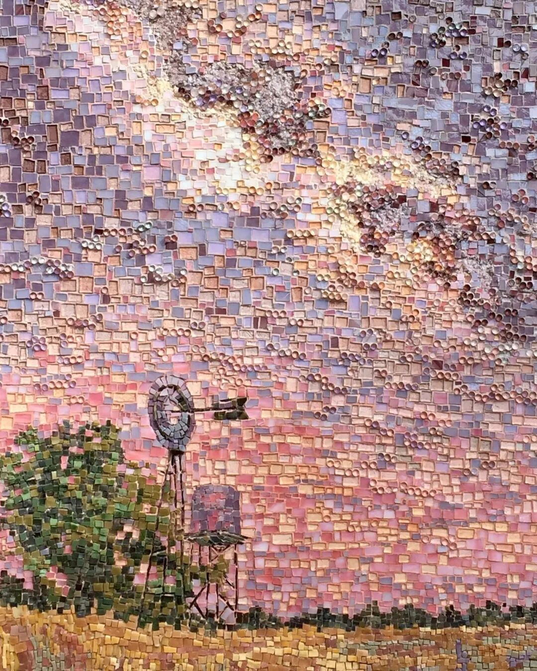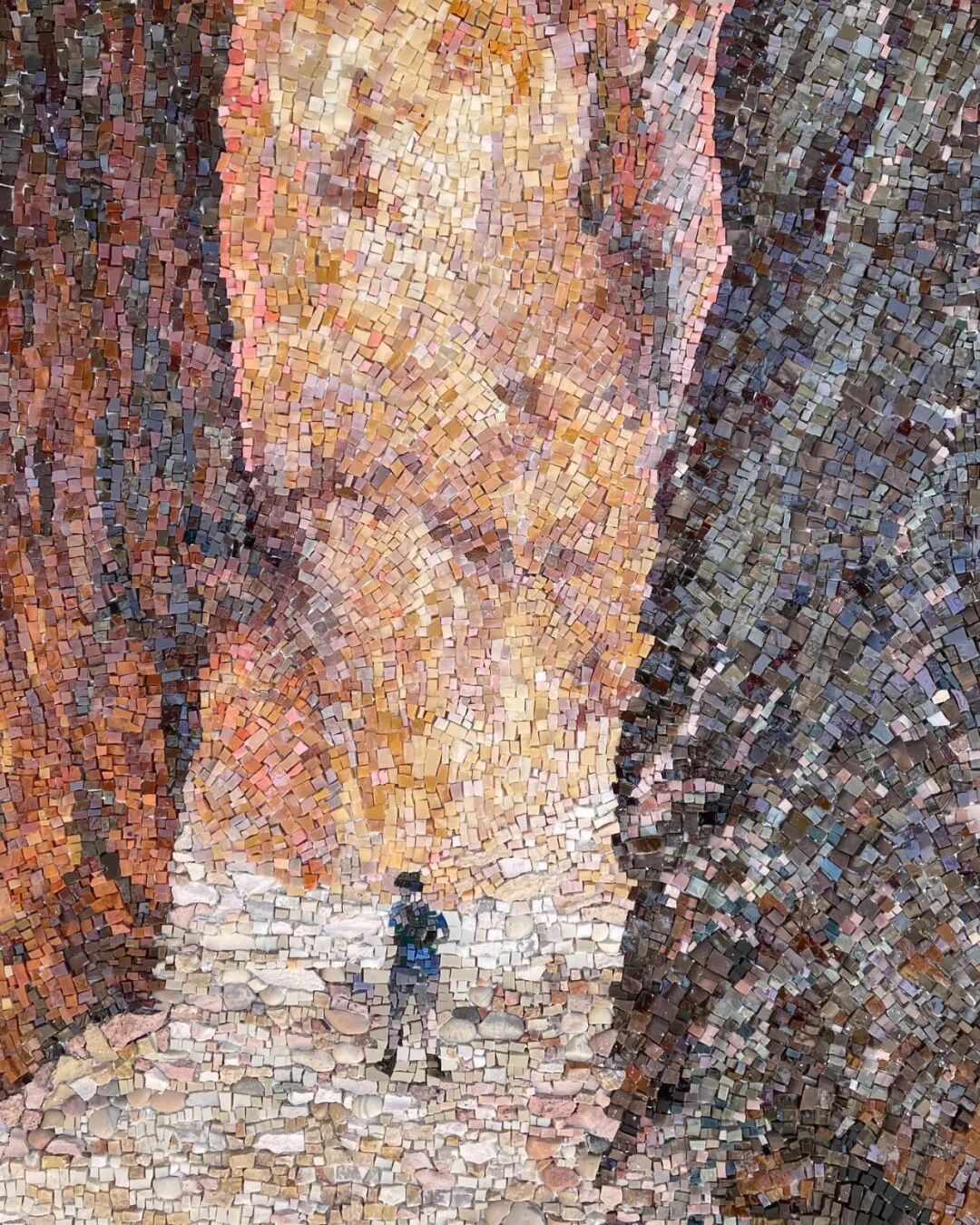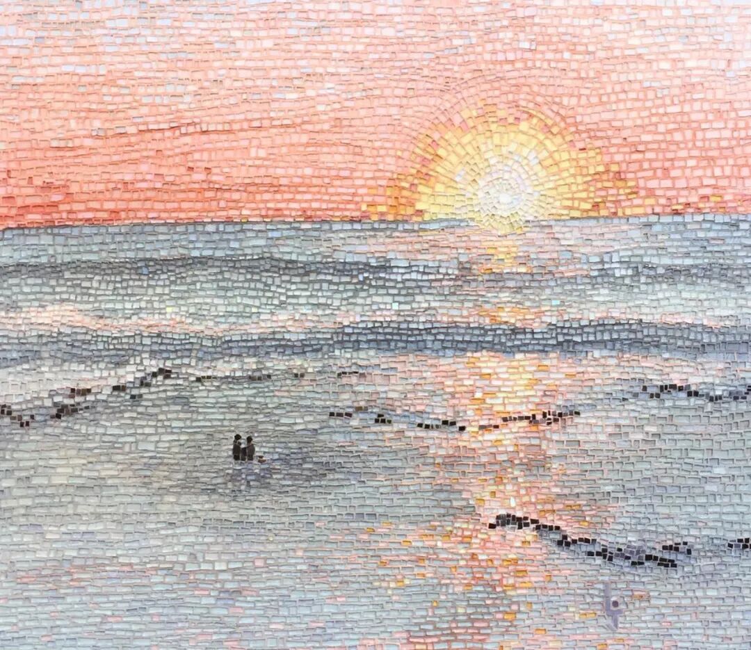 大量的时间与精力投入,自然也会为创造者带来同等收获,这些完成的马赛克画作,会给人带来一种极佳的视觉体验,疏密有序的排列,也会给画作带来律动感,不至于让人看得眼花缭乱,当然,这种处理方式就需要依赖创作者的经验与审美能力了。