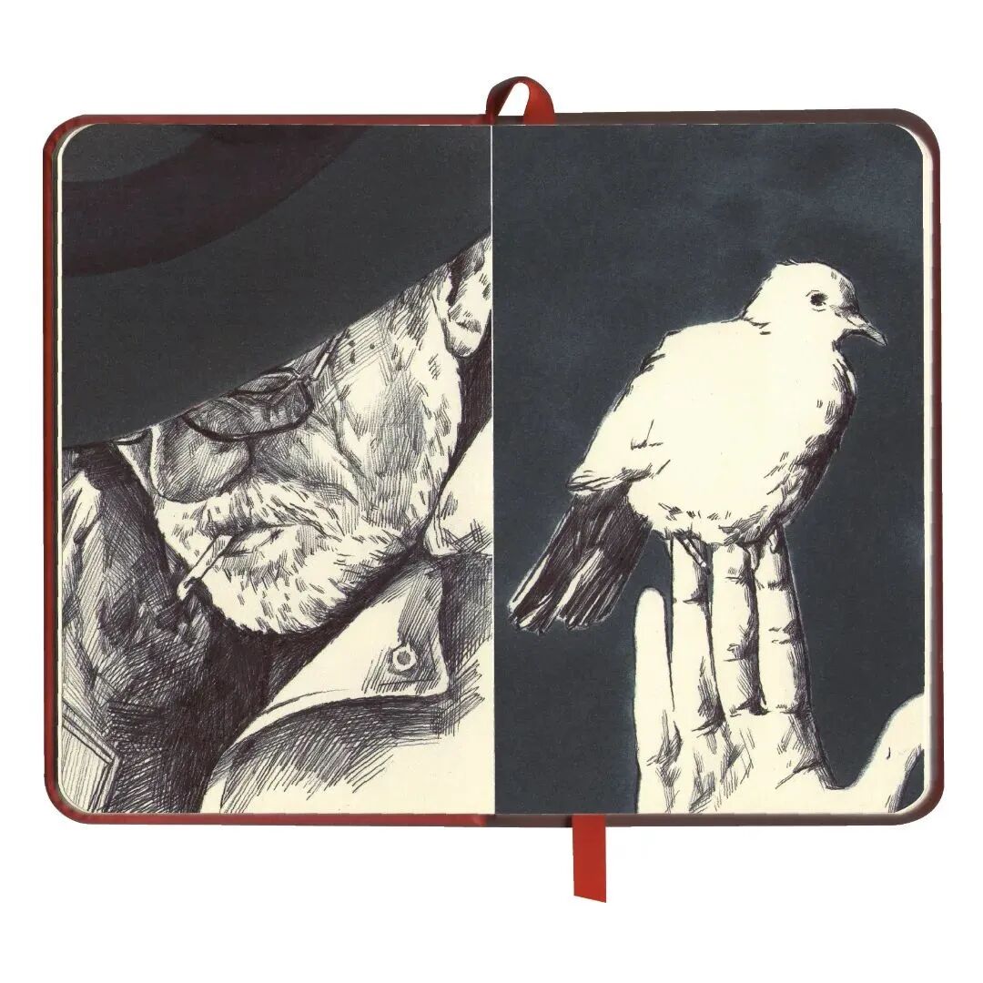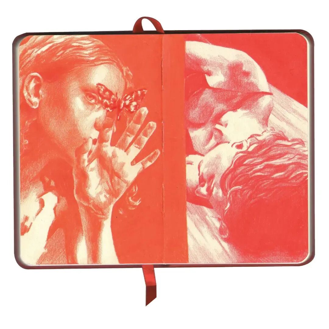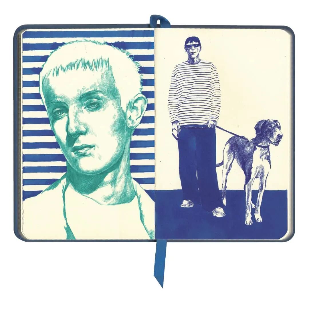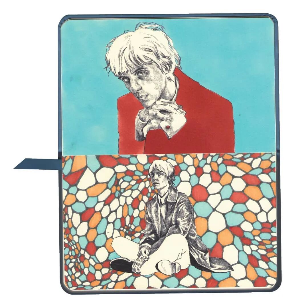 这位在素描本上绘画的艺术家叫凯瑟琳·阿克穆伦,以钢笔画和素描画作闻名,作为一位不善于表达的艺术家,她喜欢在画作中描述故事,通过画作去表达自己的感受,因此,我们可以在凯瑟琳·阿克穆伦的素描画作中,看到许多双联画,这些画作充满了故事性。