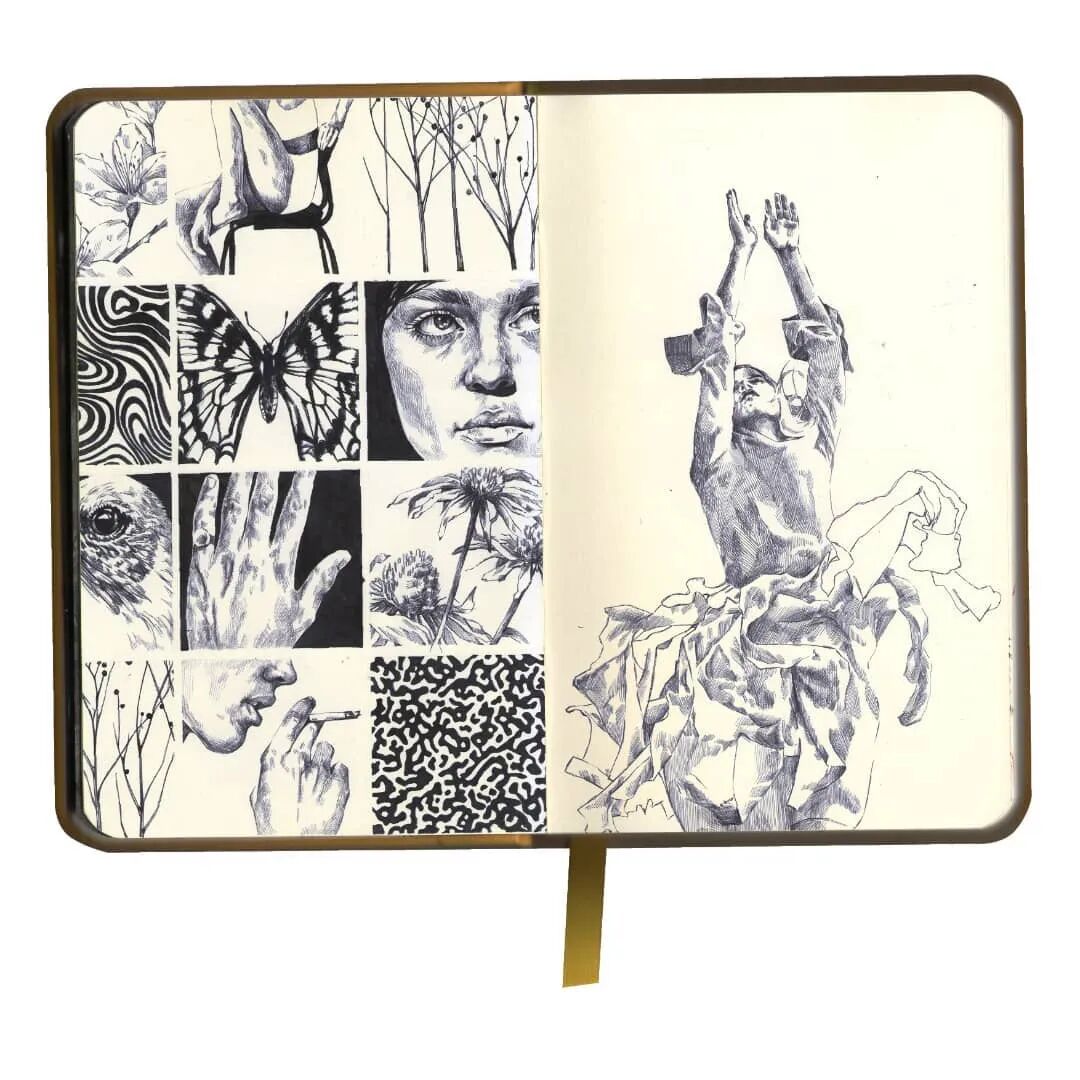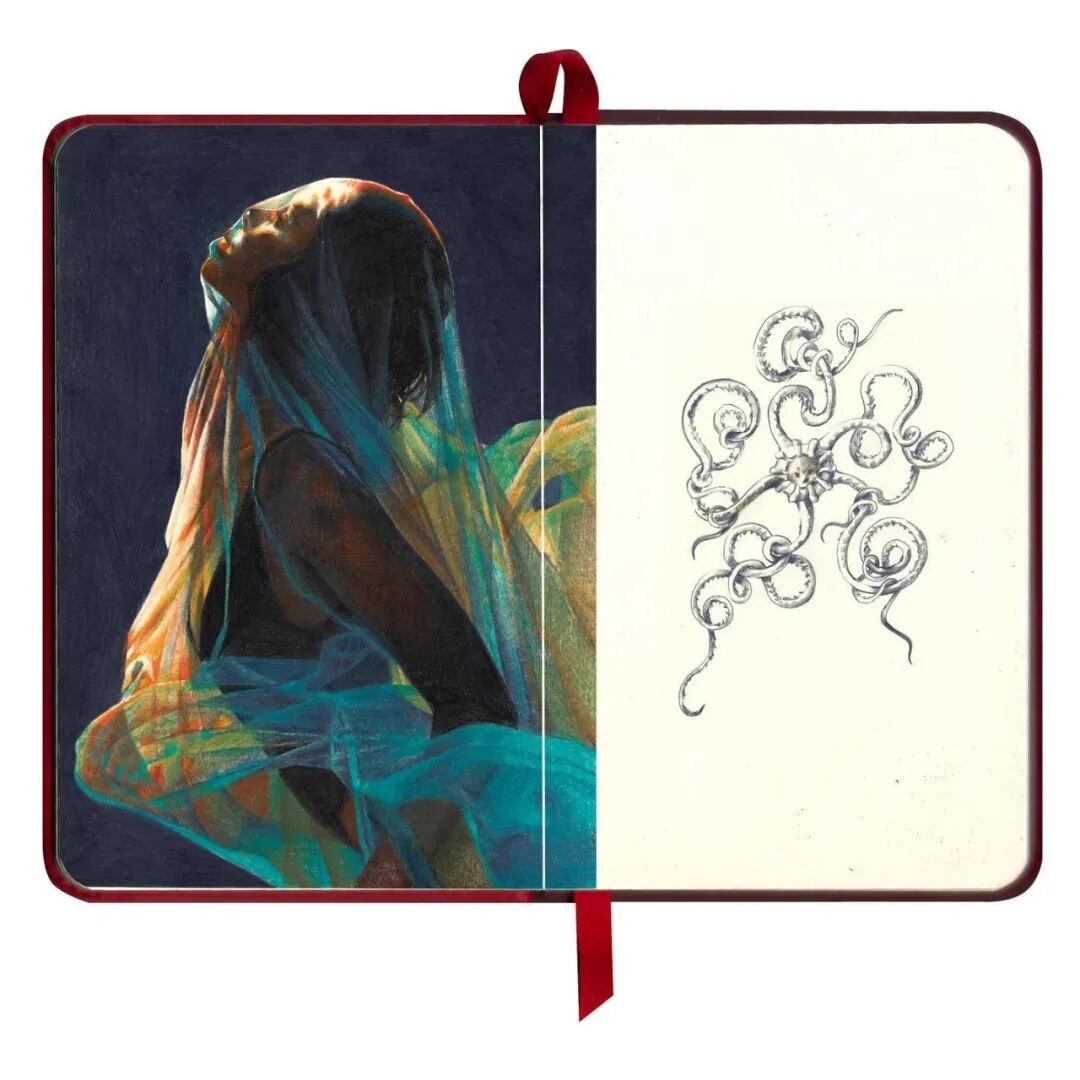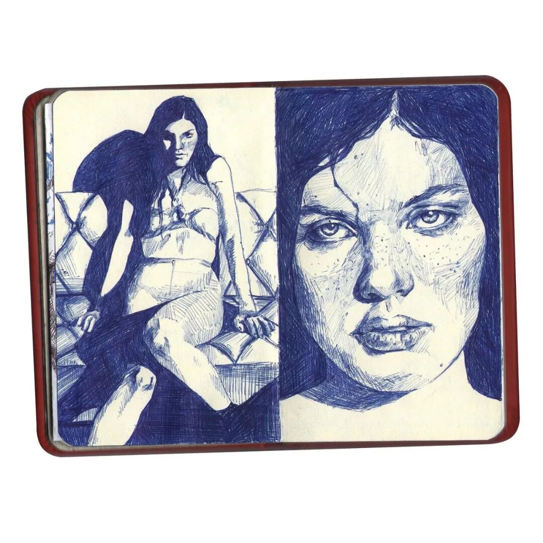 接下来,就让我们一起来欣赏一下凯瑟琳·阿克穆伦绘制在素描本上的精彩画作吧,这些精彩的画作,会让我们产生十分纠结的感觉,既惋惜她使用素描本去绘制这些作品,又为她在素描本上绘制的精彩作品感到惊艳。