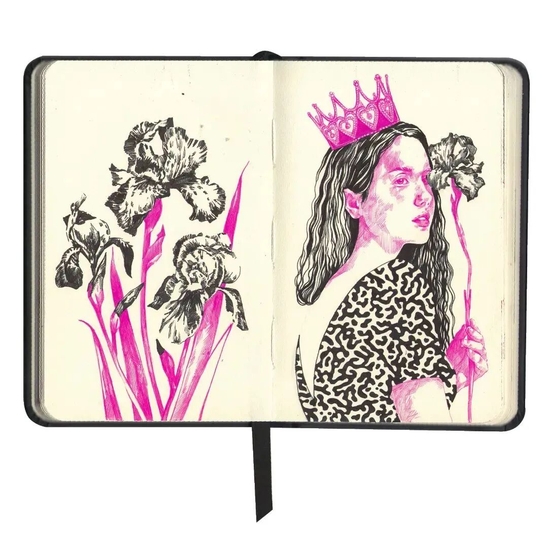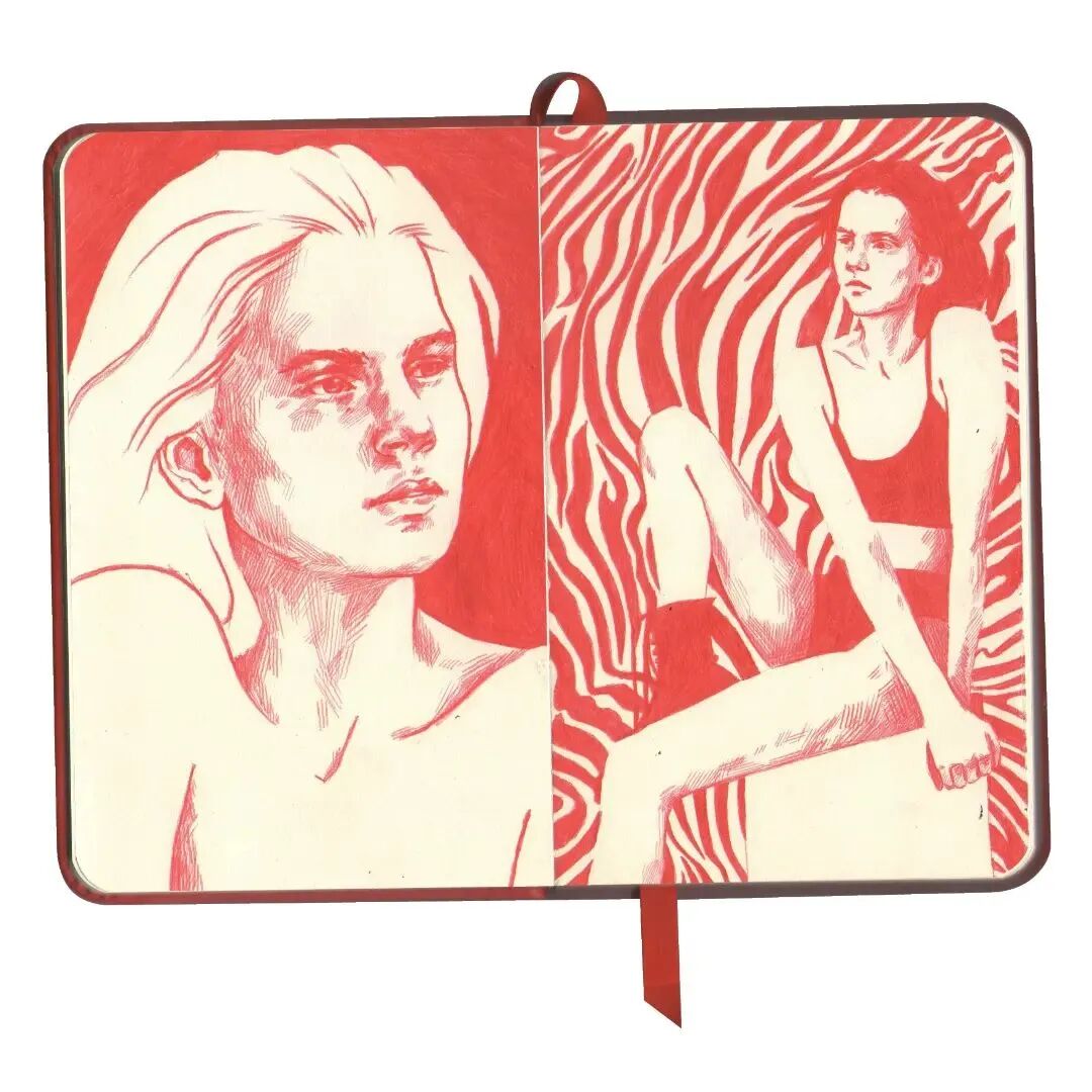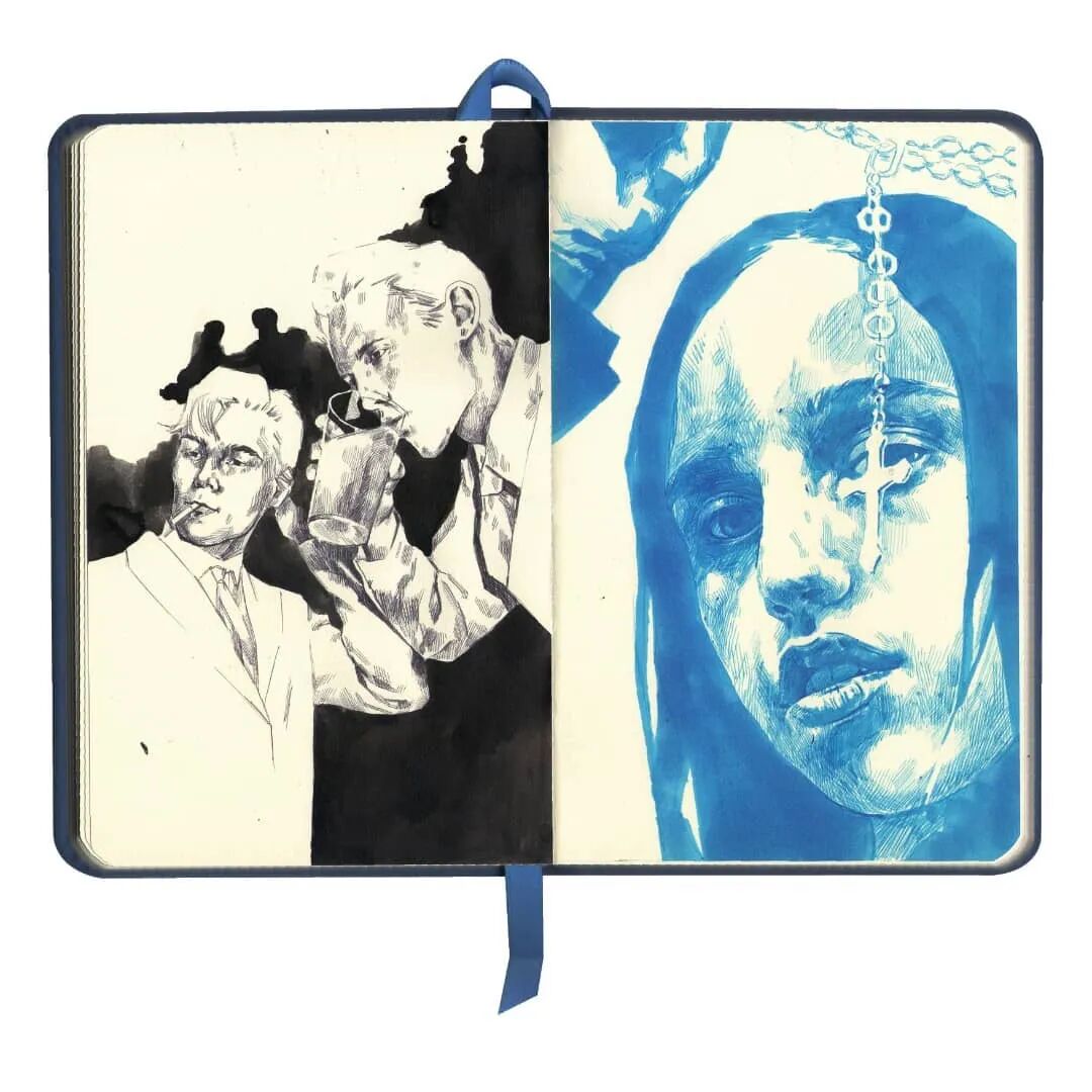 接下来,就让我们一起来欣赏一下凯瑟琳·阿克穆伦绘制在素描本上的精彩画作吧,这些精彩的画作,会让我们产生十分纠结的感觉,既惋惜她使用素描本去绘制这些作品,又为她在素描本上绘制的精彩作品感到惊艳。