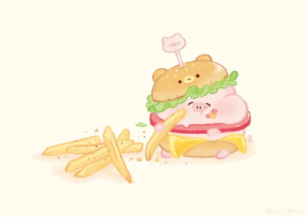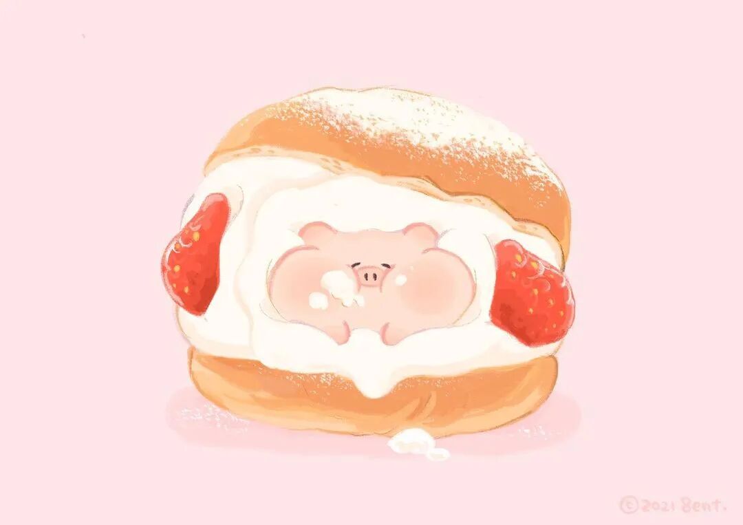 从2013年开始到今天,藤本惠美已经绘制插画作品10年的时间,这只粉红色的小猪也存在了近十年的时间,相信它还会一直存在下去,这位插画家依旧会不断围绕这只粉红色的小猪一直绘画下去。接下来,就让我们一起来欣赏一下藤本惠美绘制这只粉红色的小猪,享用美食的插画作品吧,相信看完这只贪吃的胖小猪,会让你的心情变得好起来。