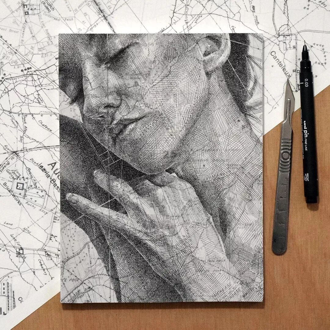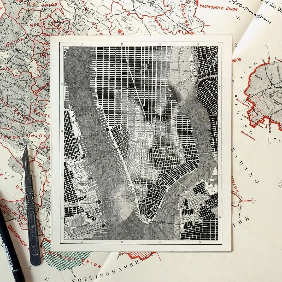 这位名叫埃德·费尔伯恩的画家,出生于1989年,2012年毕业于卡迪夫艺术与设计学院,此后就一直从事绘画创作,用地图去绘画是他最近几年才开发出来的特色画法。