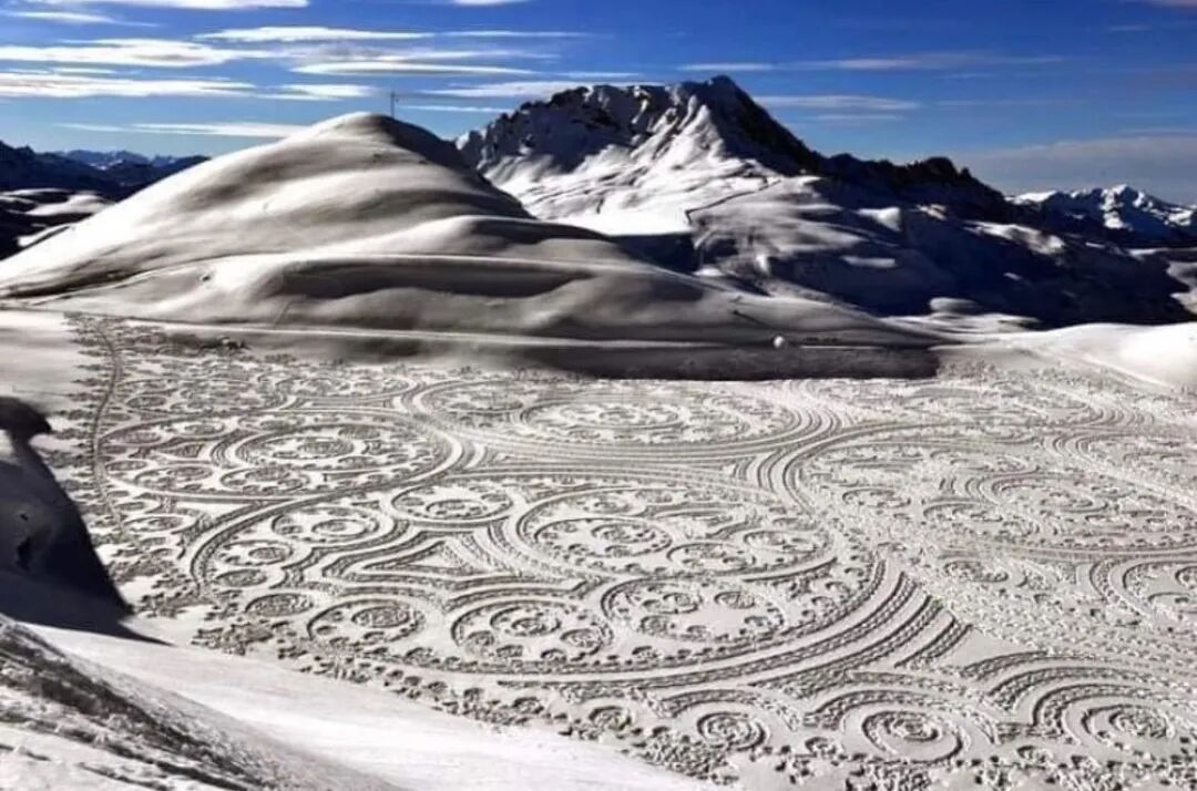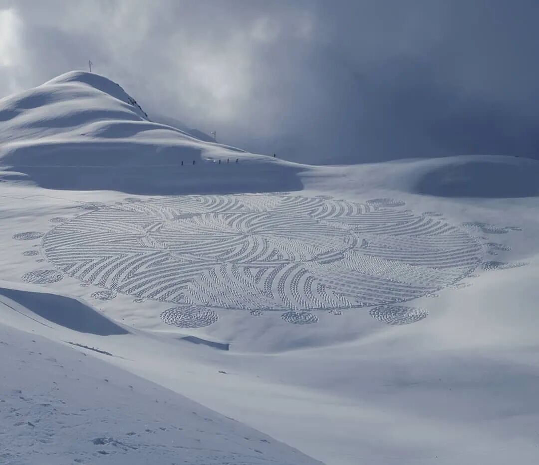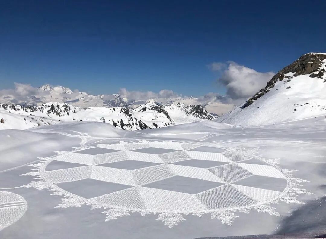 创作这些特别的大地雪画,西蒙·贝克并不是仅仅为了哗众取宠,这些精彩的大地雪画背后,还有更深层的意义,那就是通过这些短暂的作品,去告诉人们因为全球变暖这一现象,山区冬季的积雪在不断减少,甚至,还有很多原本被冰雪覆盖的高山,逐渐变成一座光秃秃的石头山。