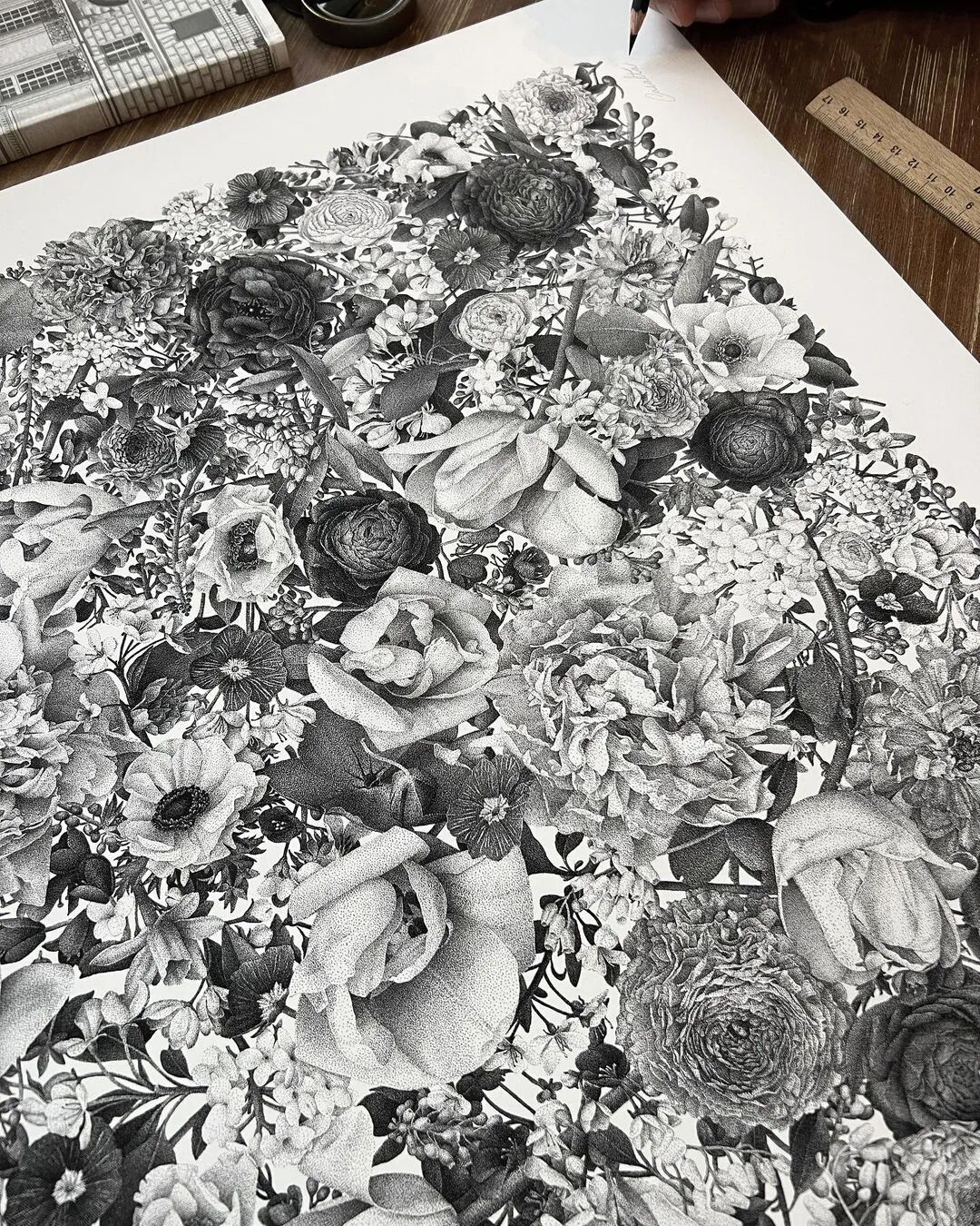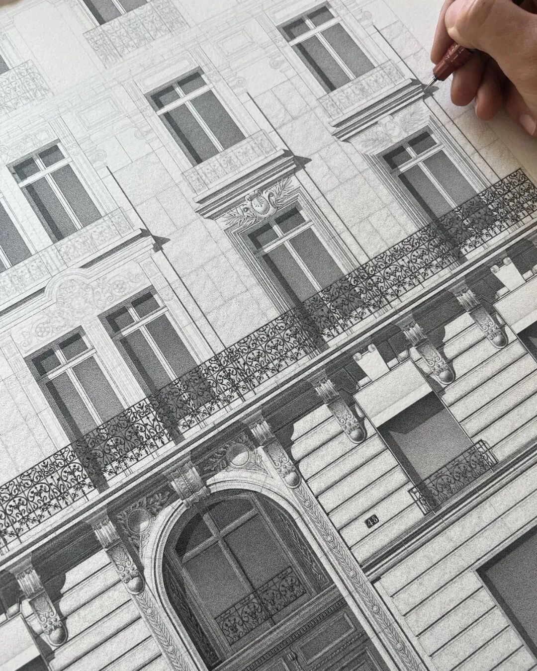 谈到他的创作过程,这位艺术家说:“这个项目总共花费了370个小时,点画的速度大概是每秒钟5到8个,这样算下来,这幅画作的总点数约为700万个”。除了这幅作品之外,泽维尔·安格·卡萨尔塔还绘制了大量精致的点画作品,题材丰富,建筑、果蔬、人物等等,细节部分令人咋舌,接下来我们就一起欣赏一下吧。