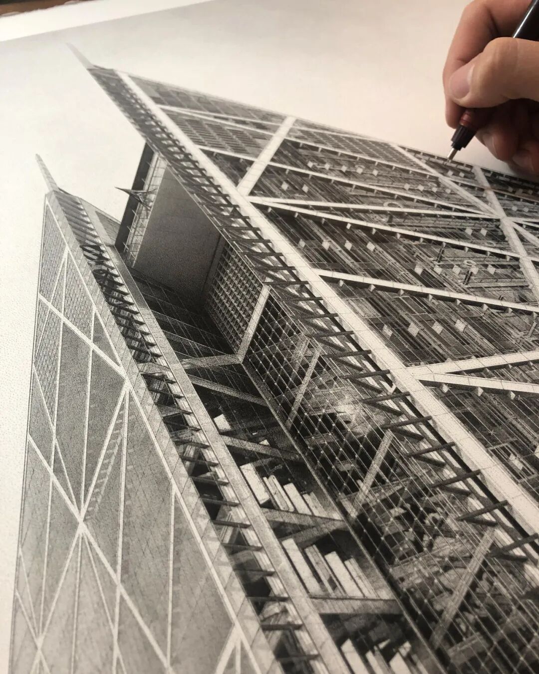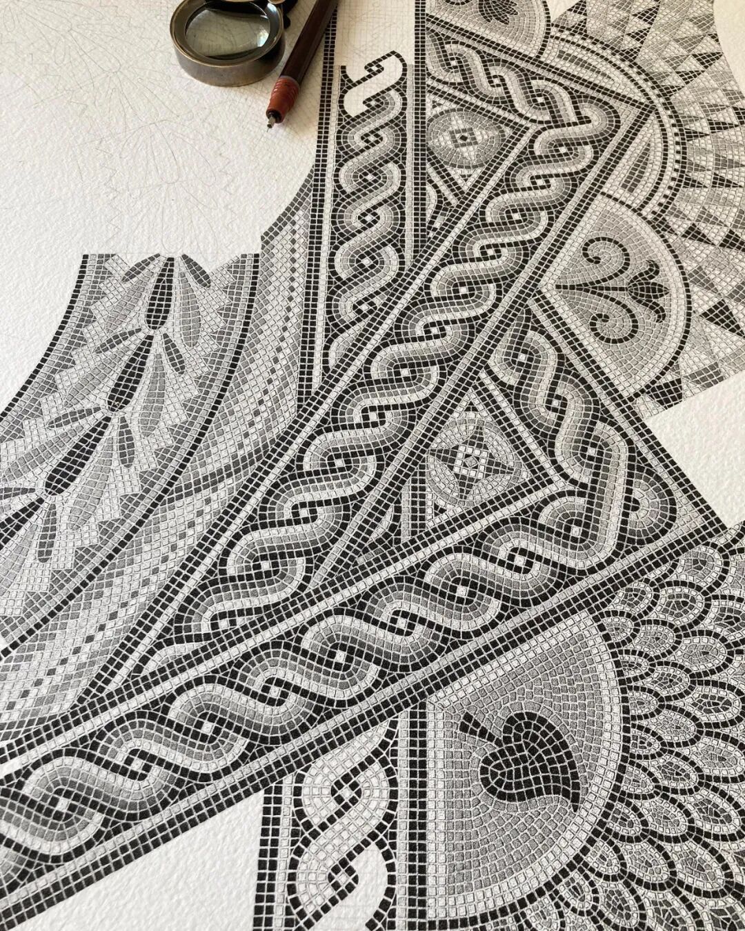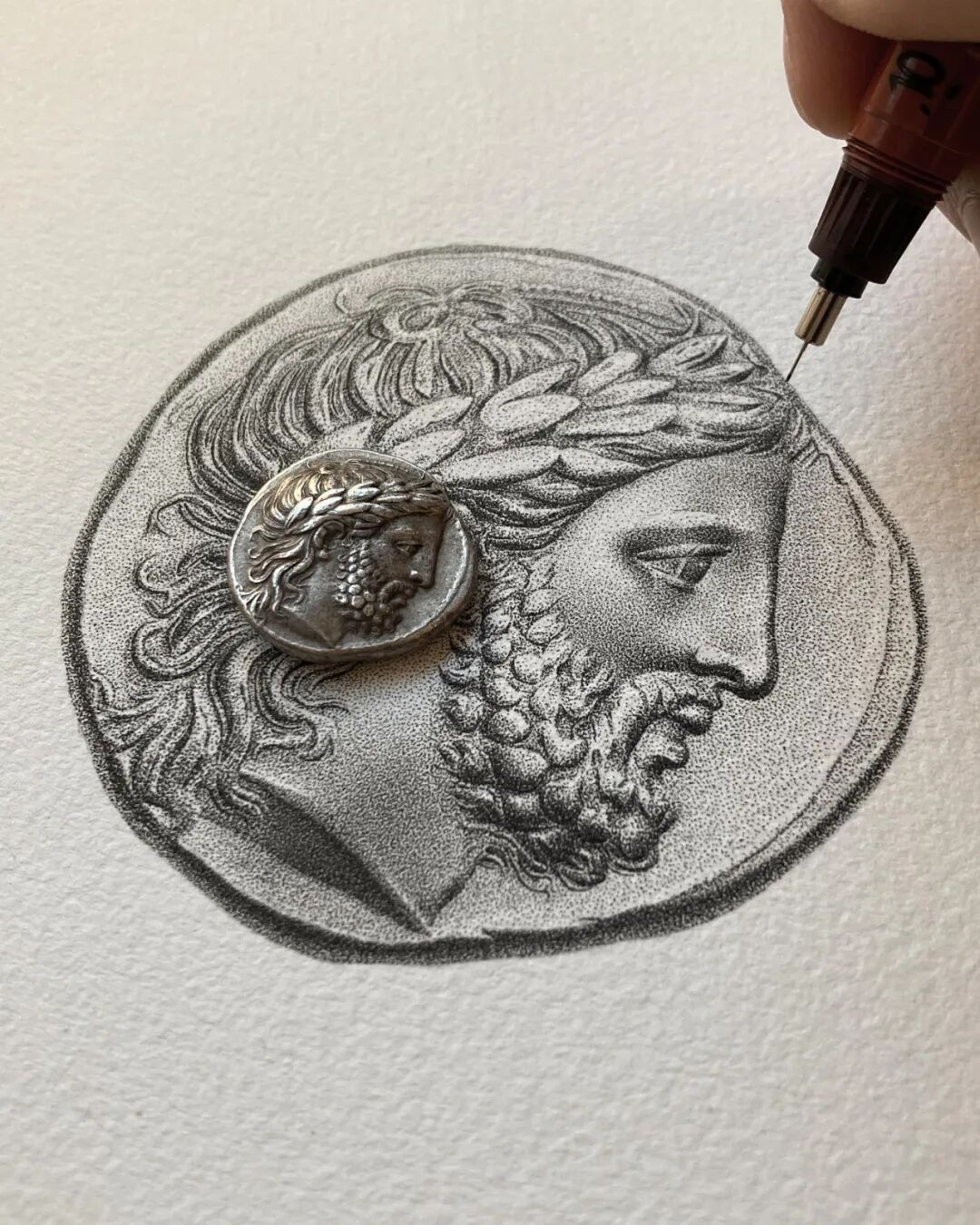 与传统的绘画方法不同,点画是一种相对独特的绘画技法,大家都知道,一般而言,一幅单色绘画的光影感和立体感,是通过大量的线条排列构建出来的,然而点画,则是用数不清的点戳出来的。点画更考验耐心,对画面的整体把控能力要求也非常高。