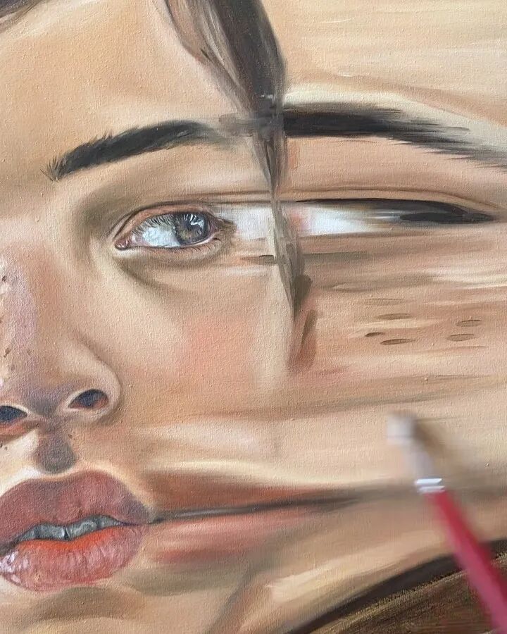 除了这一系列隐去五官的单色肖像之外,亨丽埃塔·哈里斯还画了大量的充满超现实感的人物肖像,他们有的面容是模糊的,有的是错位的,有的是重叠的,有的是扭曲的......总之,没有一张脸是“正常”的,我们没办法定义何为正常,何为不正常,或许在这位艺术家看来,人的脸本身就是各种模样吧。