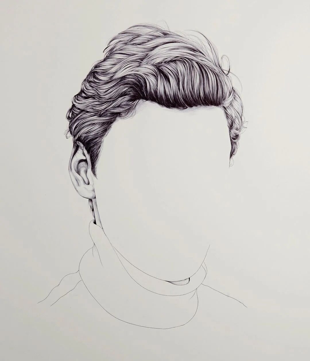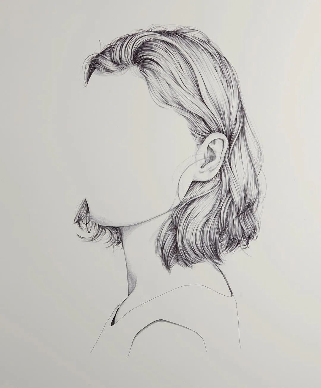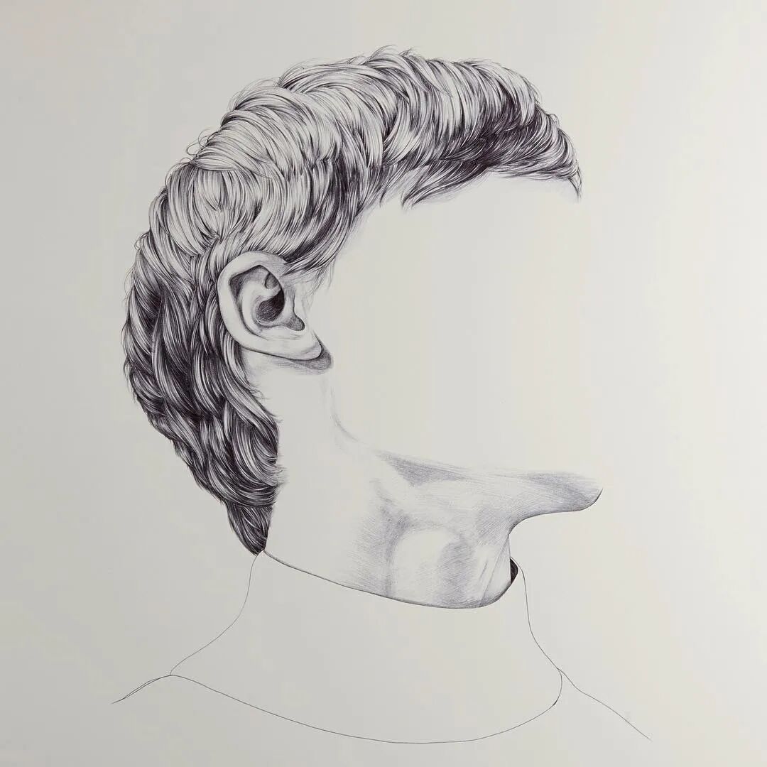 就是有人喜欢反其道而行之,你说要画五官,他偏偏不画五官,只画五官之外的东西,比如面部轮廓、头发、衣领,整出了一组“无脸”肖像画。这位“叛逆”的艺术家来自新西兰,名字叫亨丽埃塔·哈里斯,他似乎跟脸有仇,要么不画,要么不好好画,看过他的作品你就知道了。