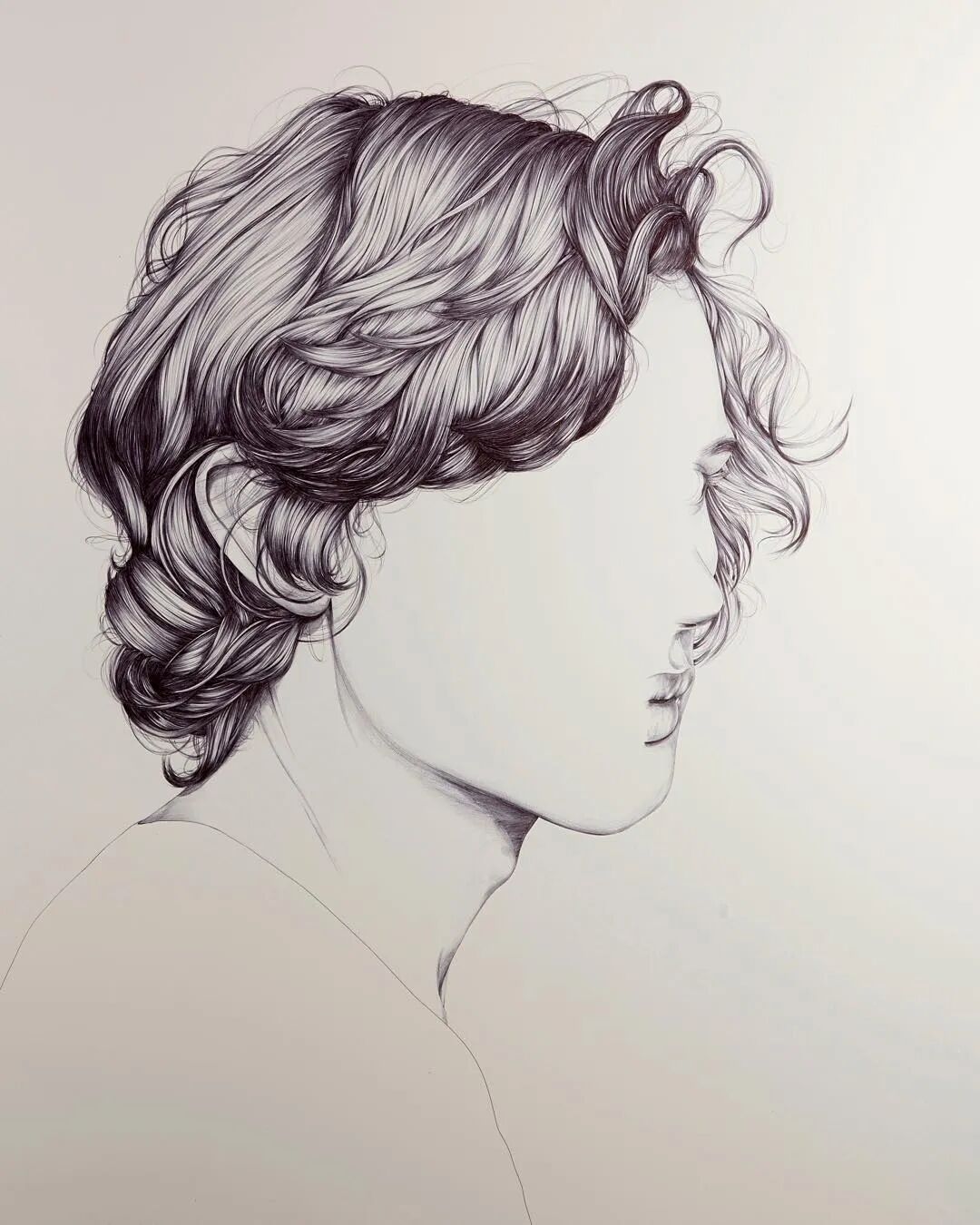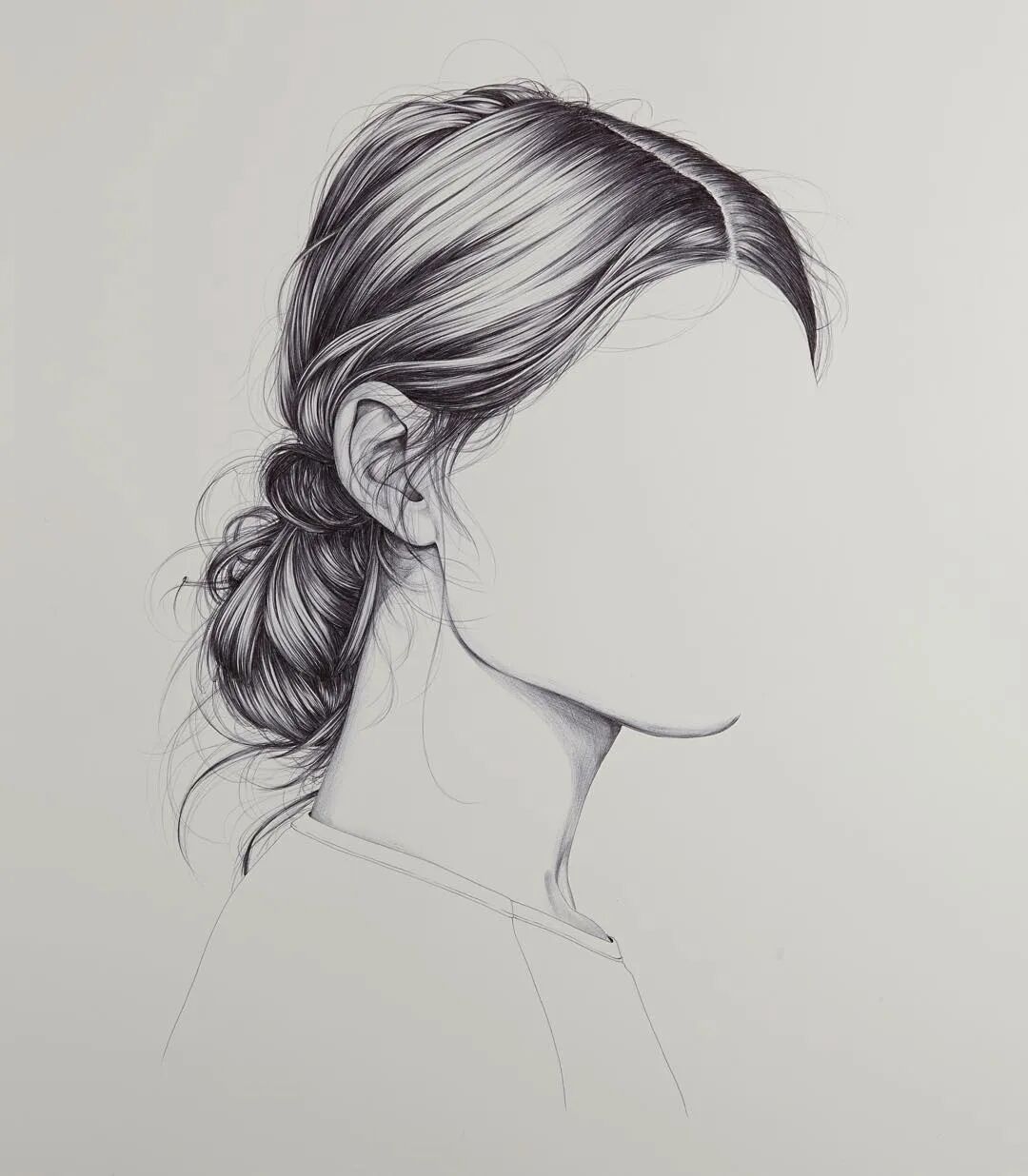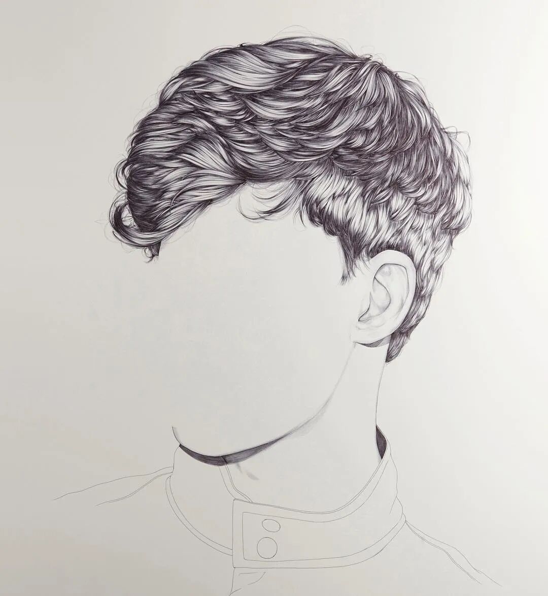 就是有人喜欢反其道而行之,你说要画五官,他偏偏不画五官,只画五官之外的东西,比如面部轮廓、头发、衣领,整出了一组“无脸”肖像画。这位“叛逆”的艺术家来自新西兰,名字叫亨丽埃塔·哈里斯,他似乎跟脸有仇,要么不画,要么不好好画,看过他的作品你就知道了。