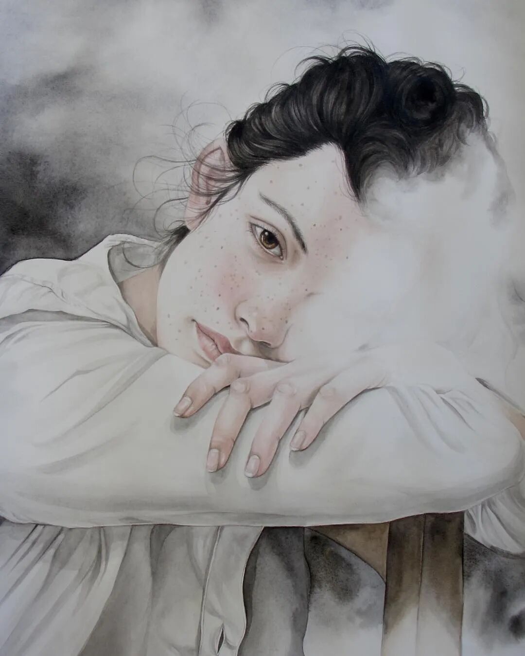 亨丽埃塔·哈里斯笔下的人物,由于缺失了面部,让人感到神秘感十足。除了面部之外,这些“神秘人”的头发和领口细节的部分被刻画得一丝不苟,精致和干净的线条和细腻的阴影,让人能够看到艺术家在绘制的时候是十分用心的。这些极具亨丽埃塔·哈里斯个人风格的“无脸”肖像画,面部看上去就像是被用橡皮擦擦掉了一样。