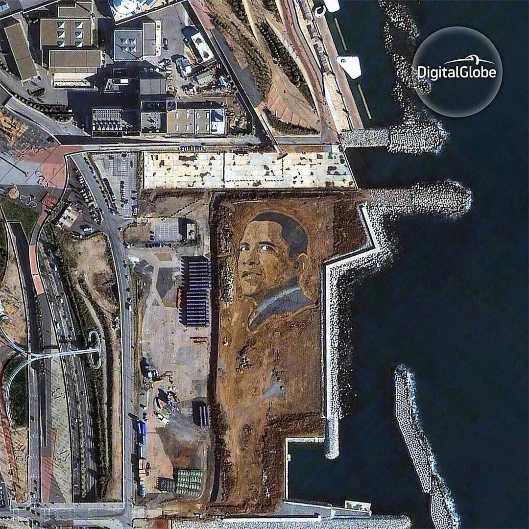 以一幅在2008年,豪尔赫·罗德里格斯·杰拉达绘制的巨幅沙画为例,这幅沙画在西班牙巴塞罗那海滨进行创作,描绘的是美国前总统奥巴马的沙画肖像,这个肖像作品大约使用了650吨沙子,面积达到了惊人的120米长,80米宽,在众多志愿者的帮助下完成。
