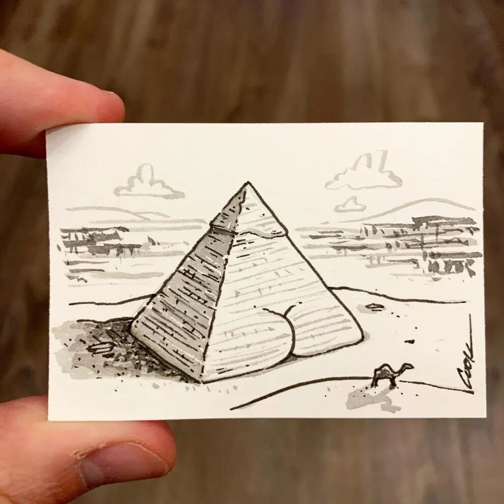 在布赖恩·库克的绘画作品里,辣椒有屁股、灯笼有屁股,就连金字塔都拥有了一个小屁股,对于这位插画家来说,万物都可以拥有屁股,只需要一点点想象力,一切都有可能。这个小屁股不仅给人带来乐趣,还打破我们的固有认知,让我们换一个角度去看待普通的事物。
