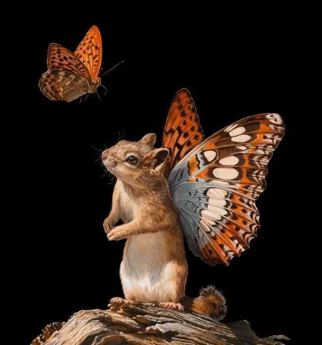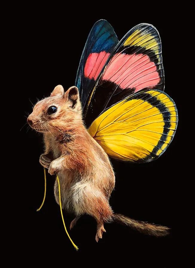 小绛今天给大家带来的是丽莎·埃里克森蝴蝶鼠系列作品,蝴蝶和老鼠我们并不陌生,一种非常美丽,一种则让人感觉讨厌,如果这两种动物结合到一起会擦出什么样的火花,让我们一起来看看吧,相信,看完这组作品你会喜欢上丽莎·埃里克森创造出来的蝴蝶鼠。