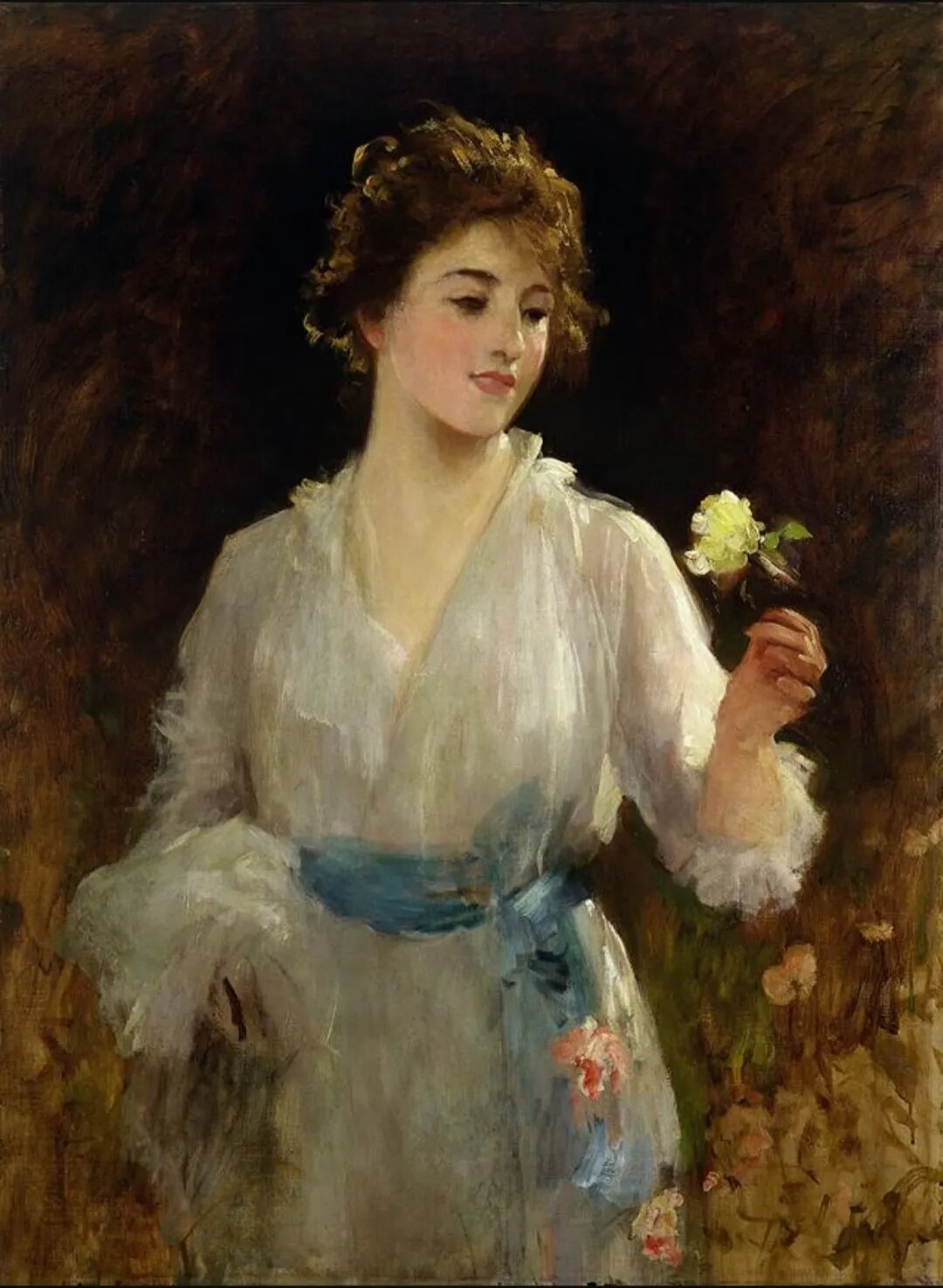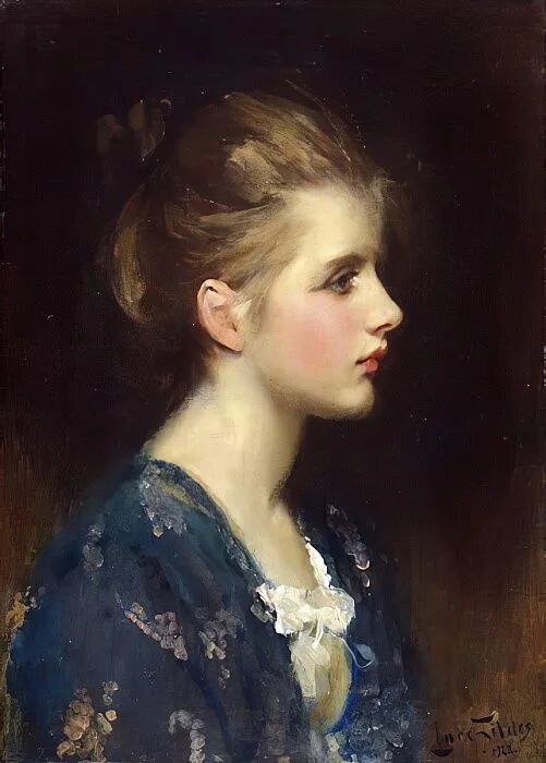 如果要评选哪一位艺术家的画作里的女子的最美侧颜,我会把这一票投给英国艺术家Samuel Luke Fildes(塞缪尔·卢克·菲尔德斯,1843 - 1927)。上面这幅画作里的女子名为Norah,她又是我心目中侧颜画像中最美的那一位女子:精致的五官,柔美的脸部曲线,真是让人一看就移不开目光了。