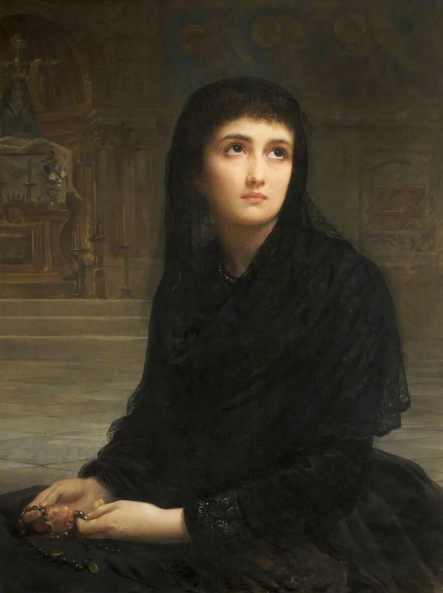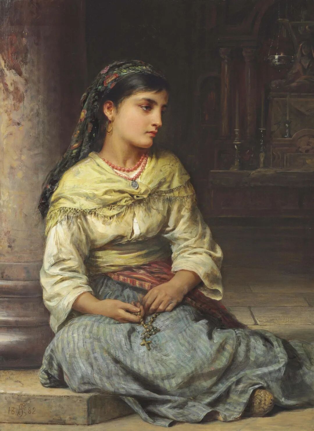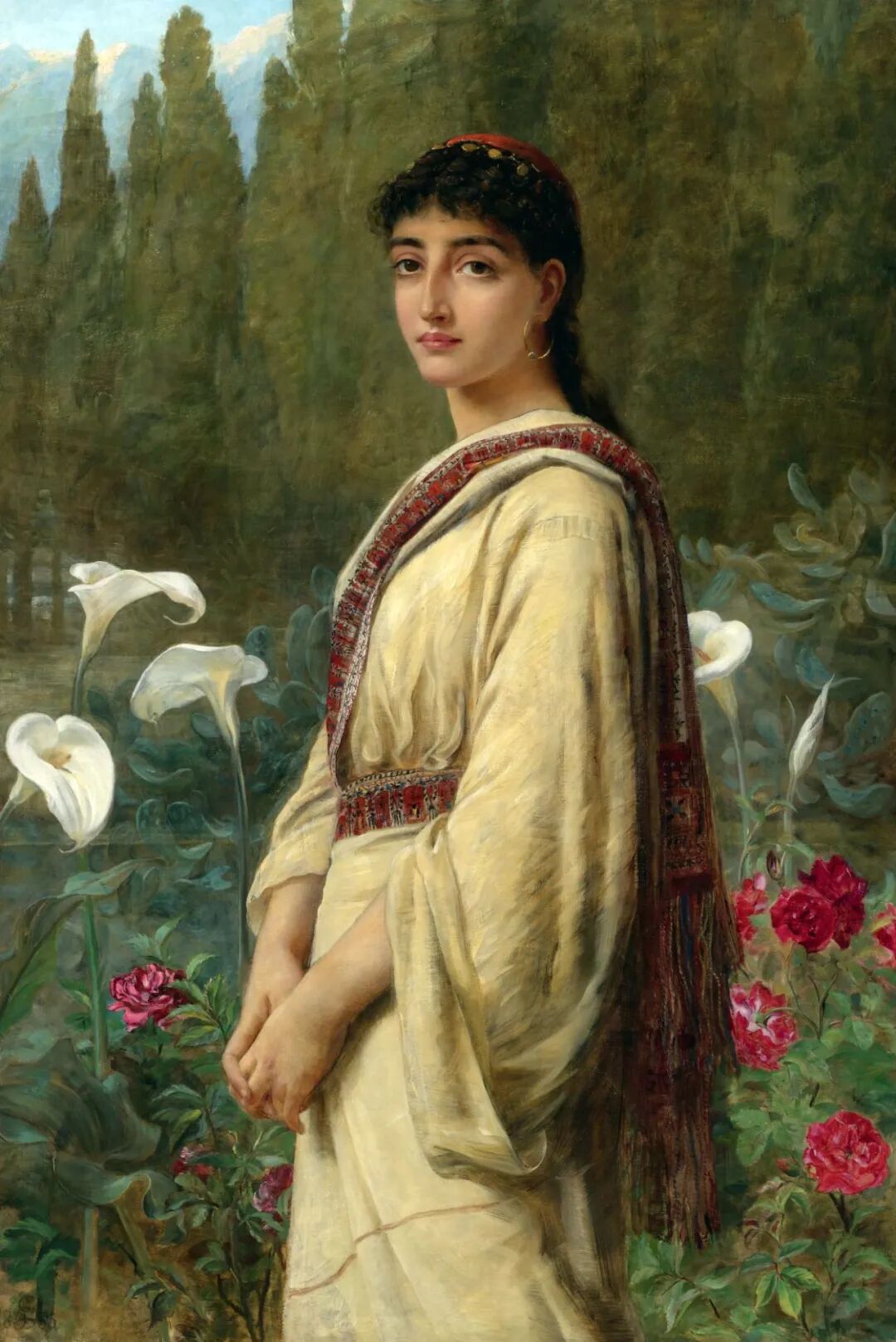 这是英国艺术家Edwin Longsden Long(埃德温·朗斯登·朗,1829-1891) 的一幅女性肖像画作品《坐着的女士的肖像画》。画中,一位气质优雅,恬淡沉静的女士安静地坐在扶手椅中,她的嘴角带着淡淡的笑容。这种静谧的氛围有一种奇妙的降噪效果,能让观者在炎热的天气下烦燥的心安静下来。