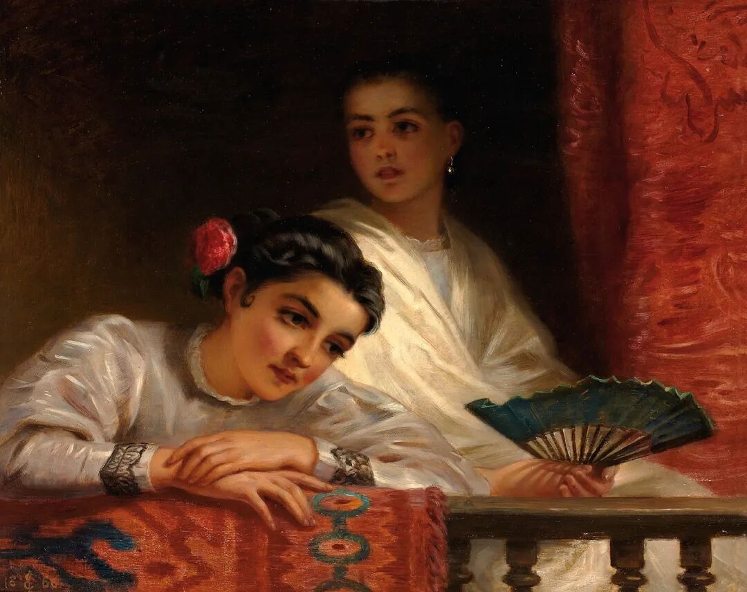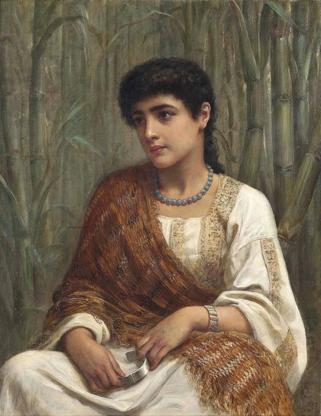 Edwin Longsden Long的肖像画符合学院派绘画的风格,但在他的很多肖像画中,艺术家将“东方主义”的特色融入其中。尤其是是使用“东方主义”的风格来展现英国的女士们,这使得女性的肖像画有着一种独特的东方韵律。