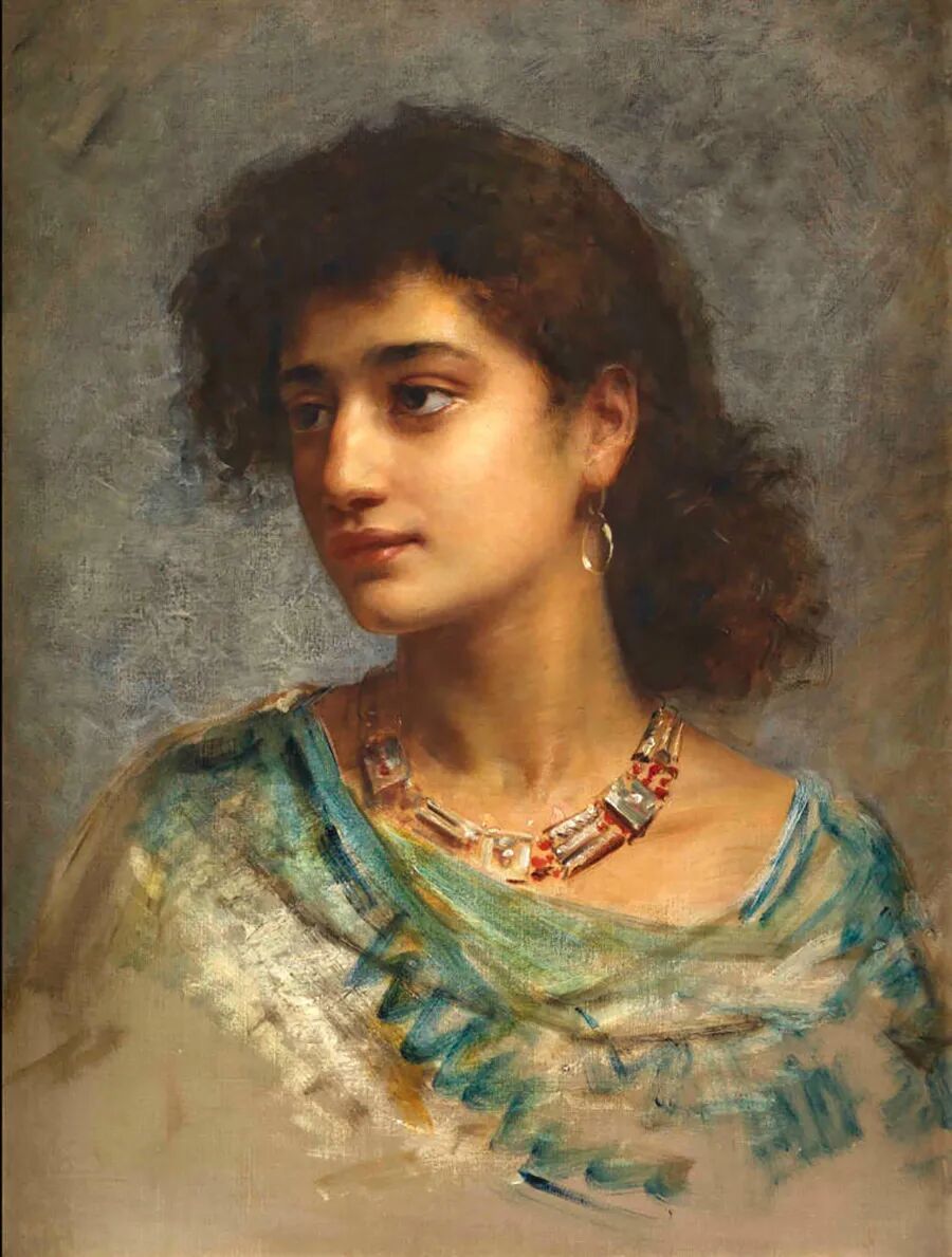 《一位阿拉伯女孩的自画像:头部和肩部》