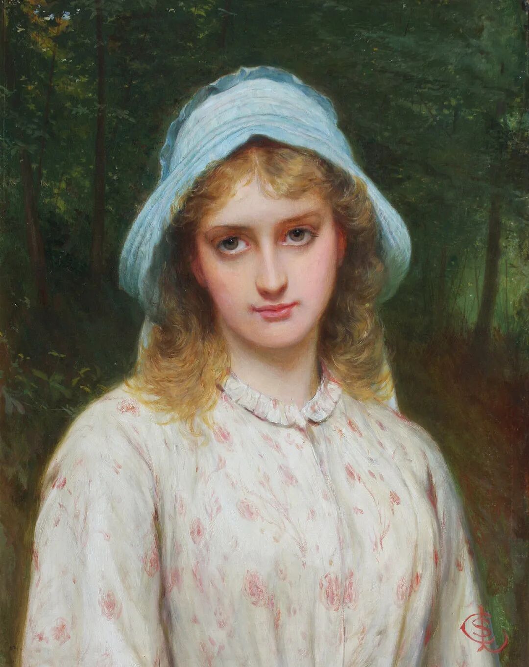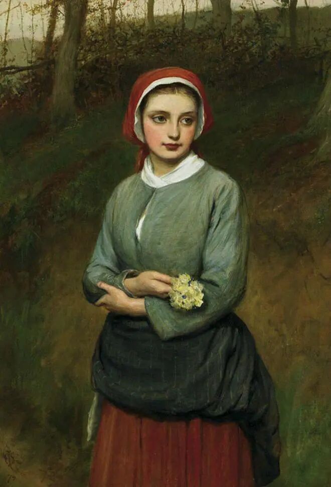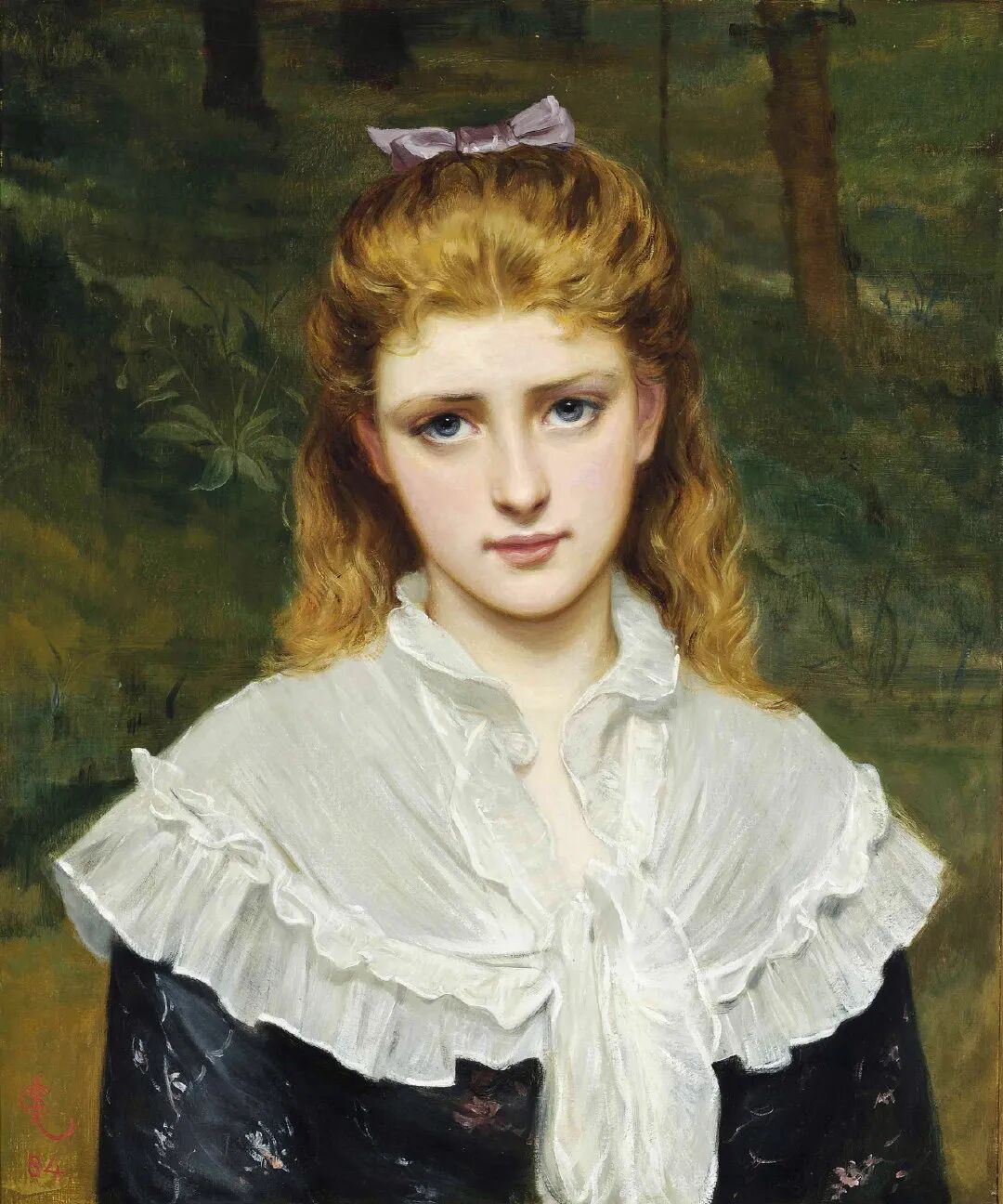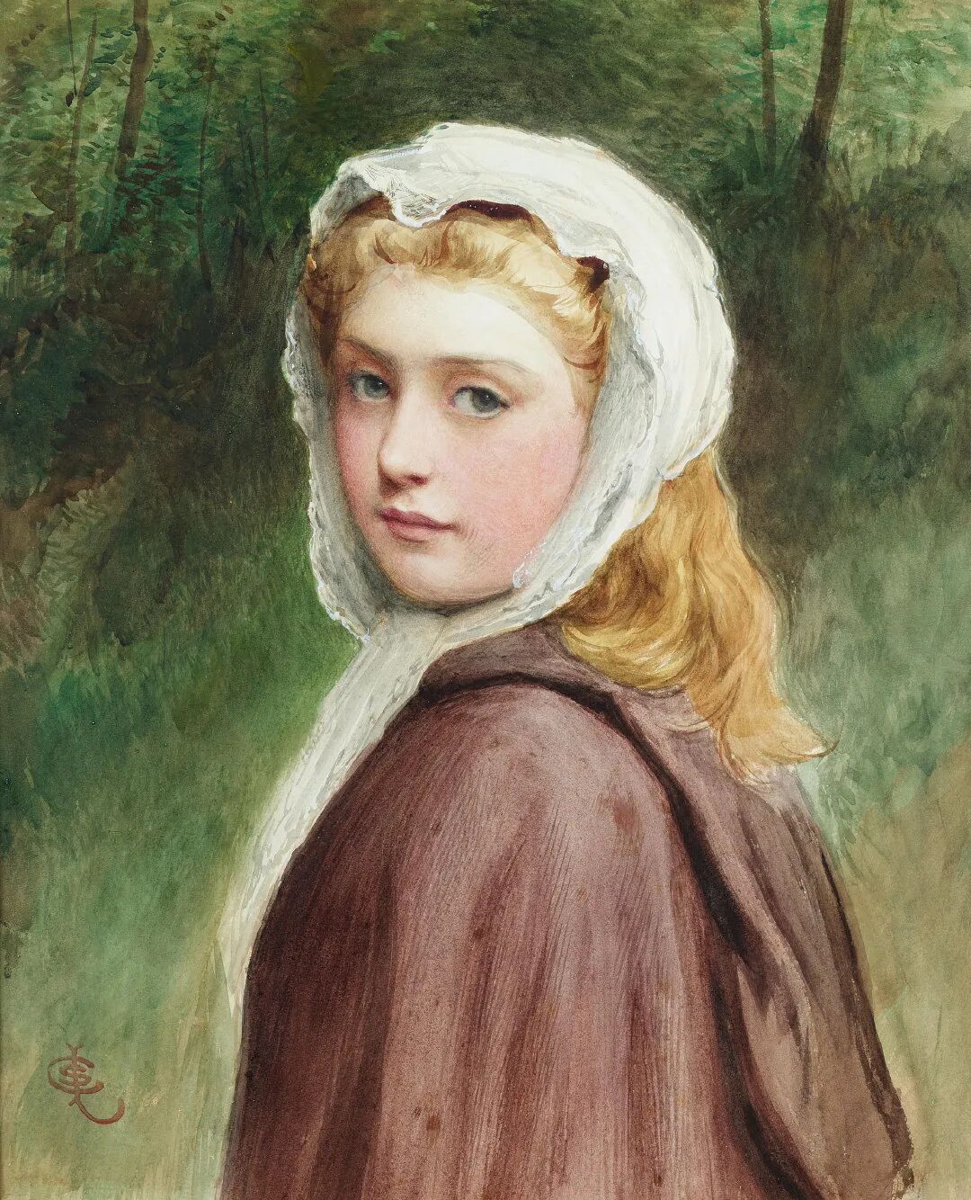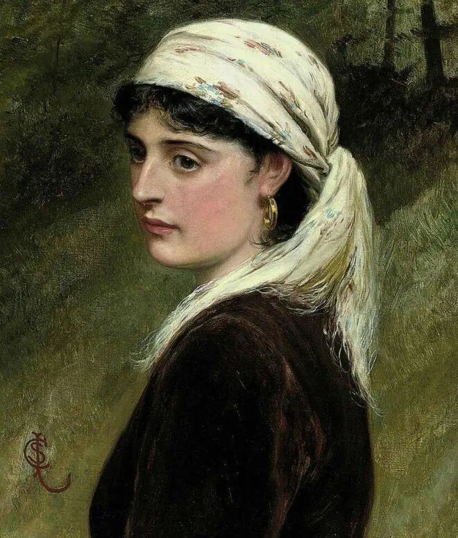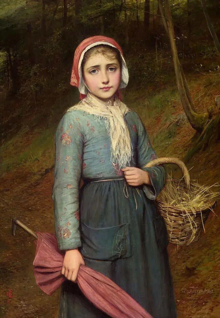 这幅少女画作是英国艺术家Charles Sillem Lidderdale(查尔斯·斯莱姆·利德代尔 ,1830-1895)。他的画作以俏丽可爱的年轻女子为主,其中很多是吉普赛女孩。