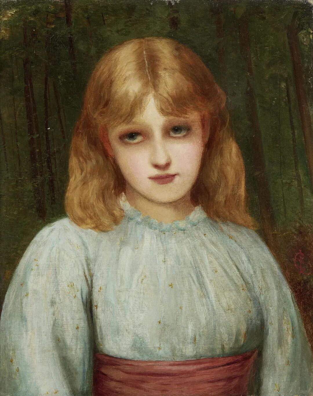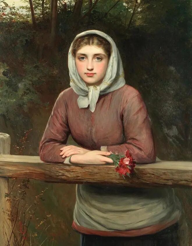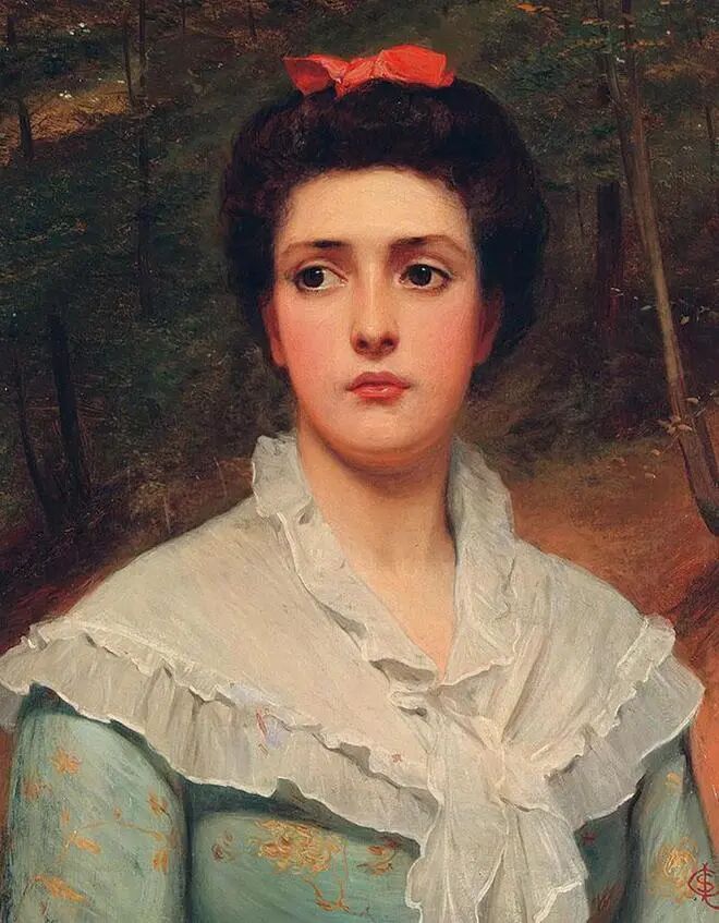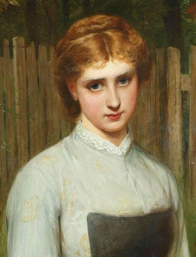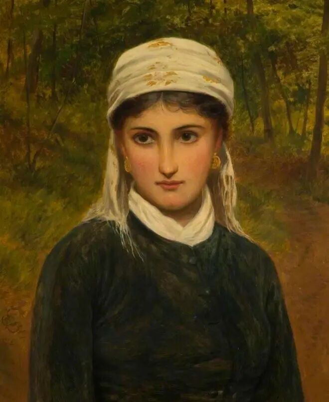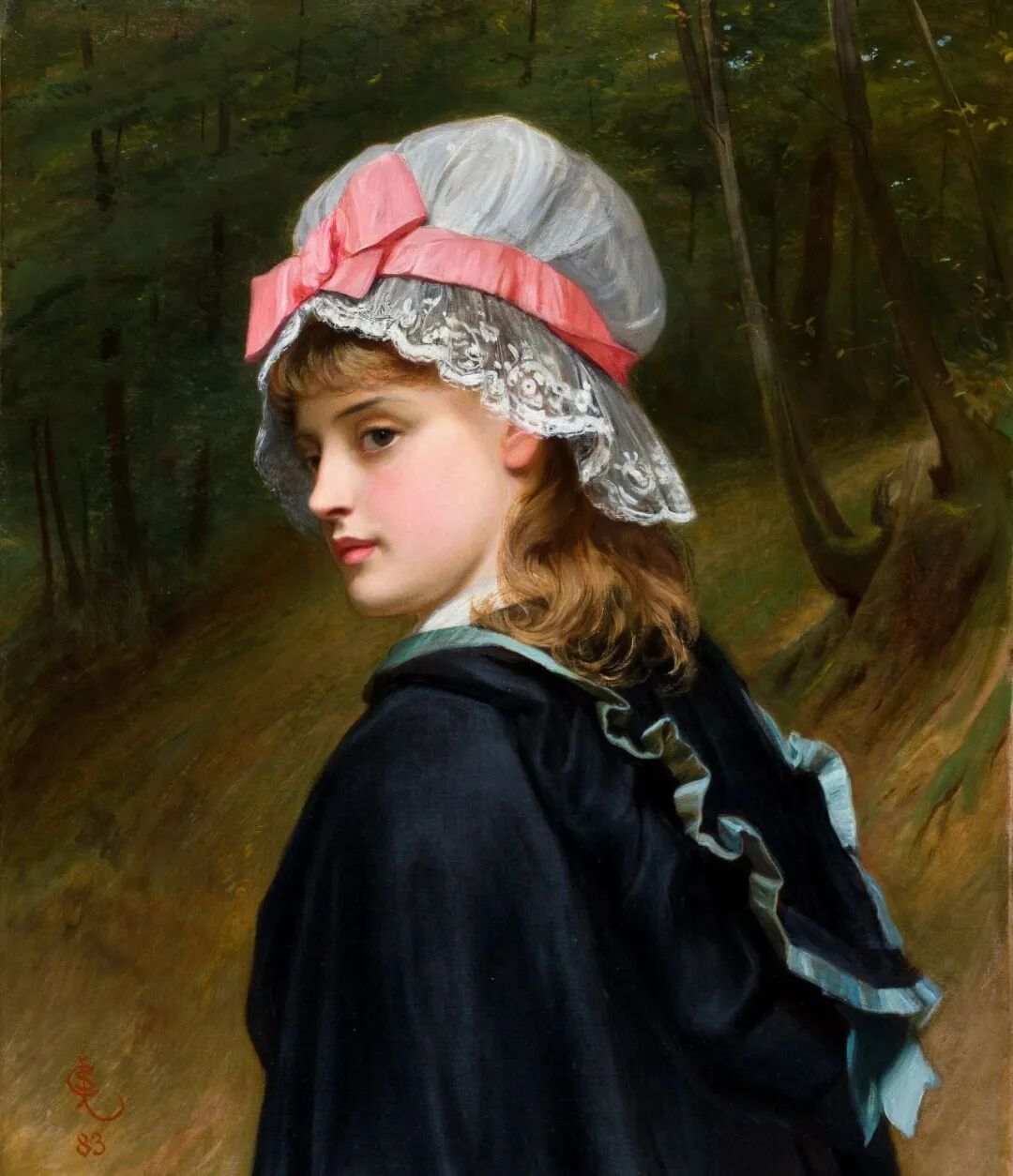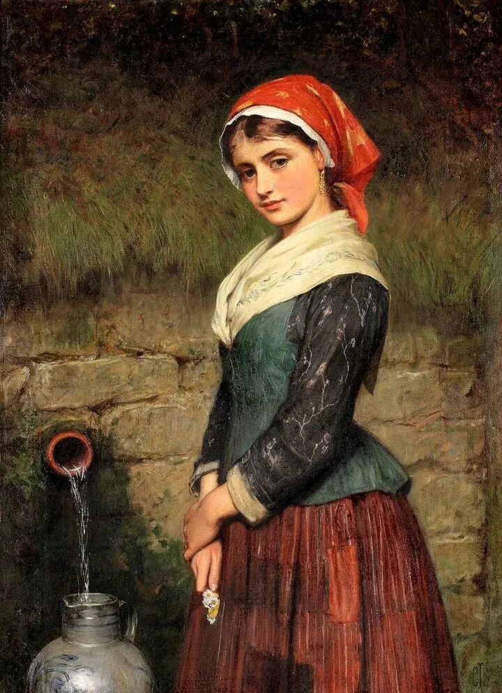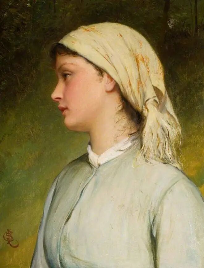 这幅少女画作是英国艺术家Charles Sillem Lidderdale(查尔斯·斯莱姆·利德代尔 ,1830-1895)。他的画作以俏丽可爱的年轻女子为主,其中很多是吉普赛女孩。