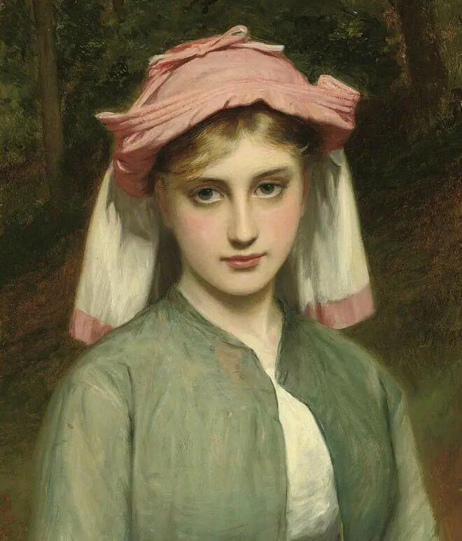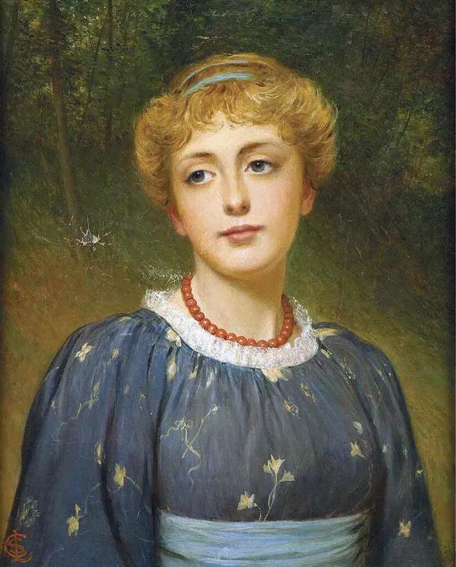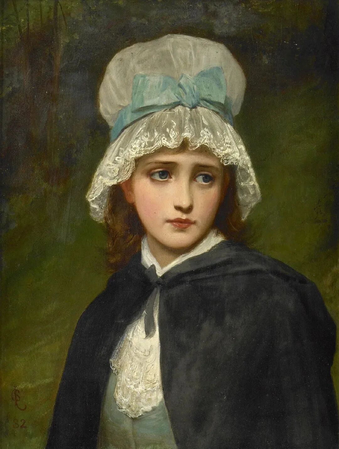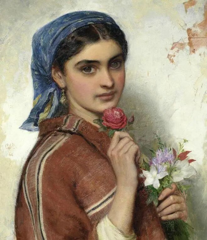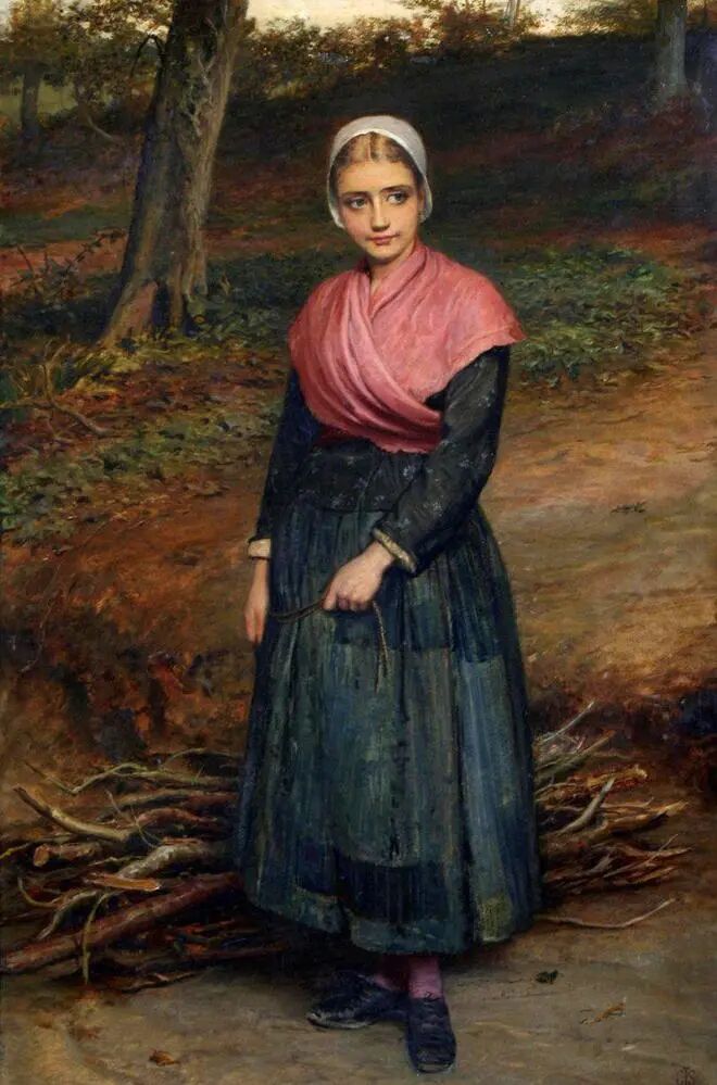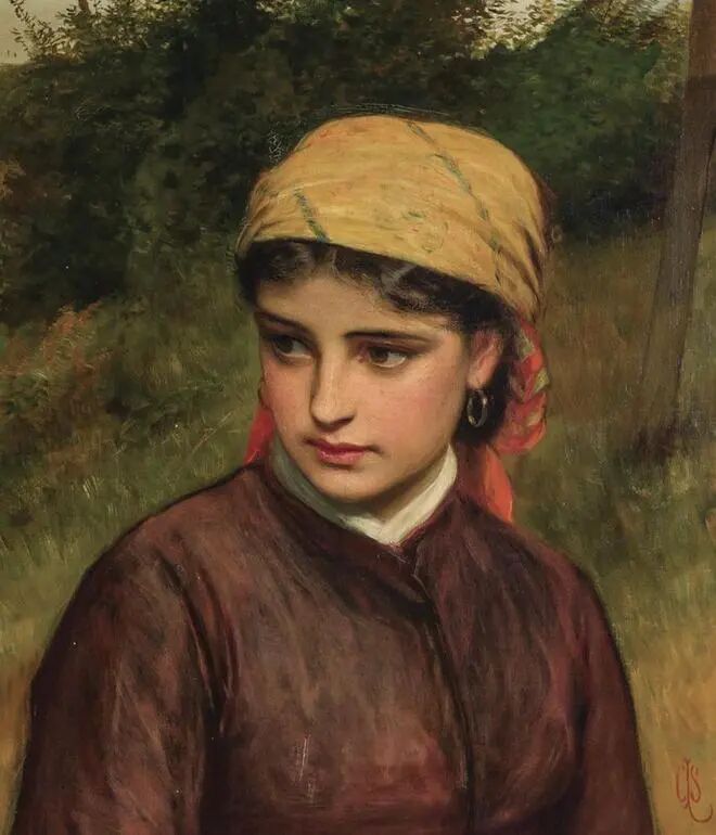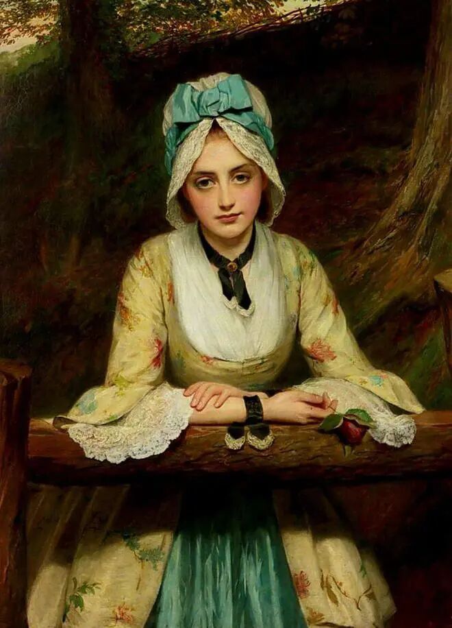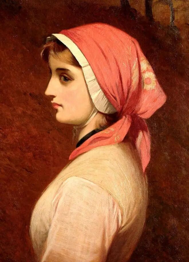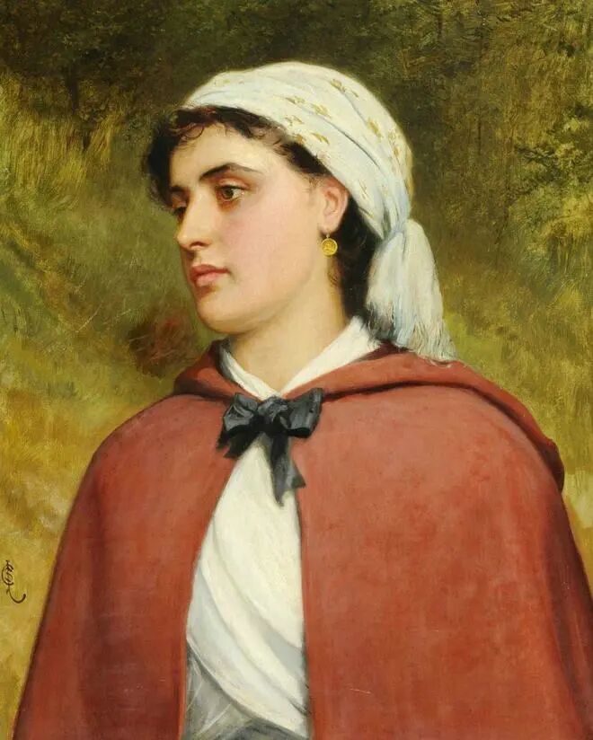 这幅少女画作是英国艺术家Charles Sillem Lidderdale(查尔斯·斯莱姆·利德代尔 ,1830-1895)。他的画作以俏丽可爱的年轻女子为主,其中很多是吉普赛女孩。