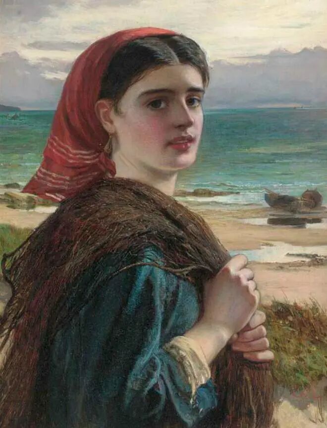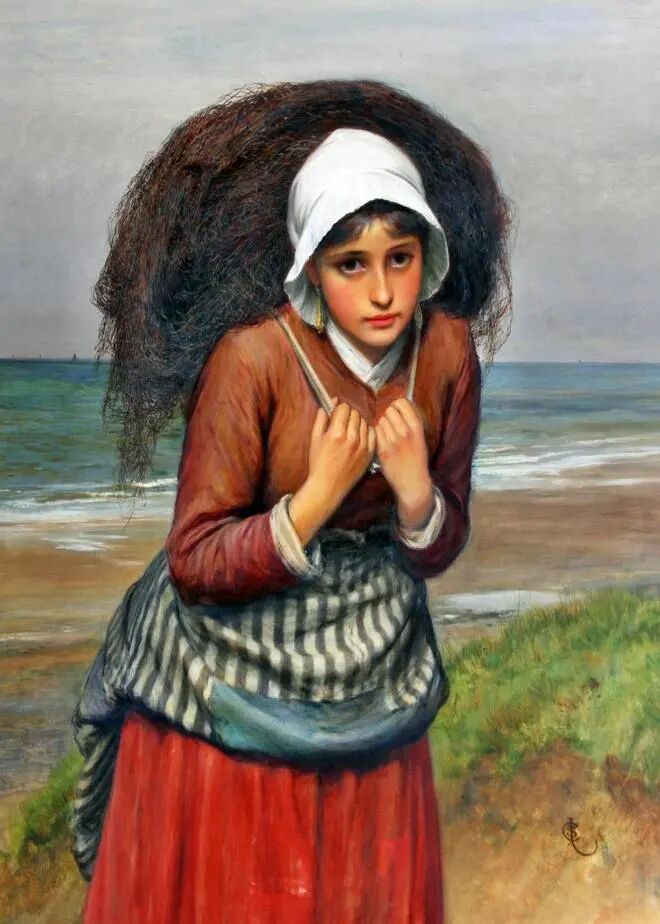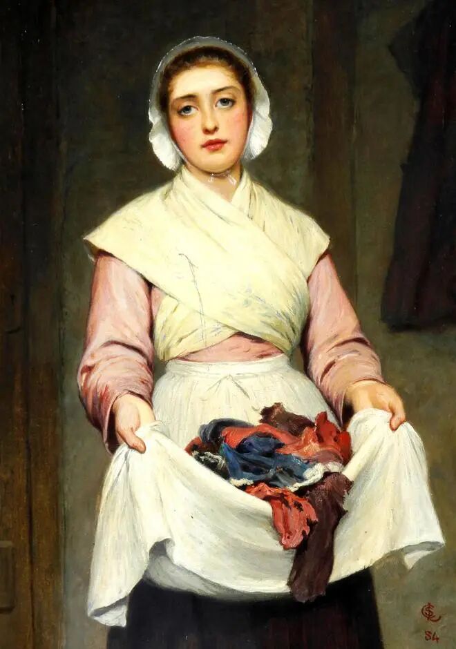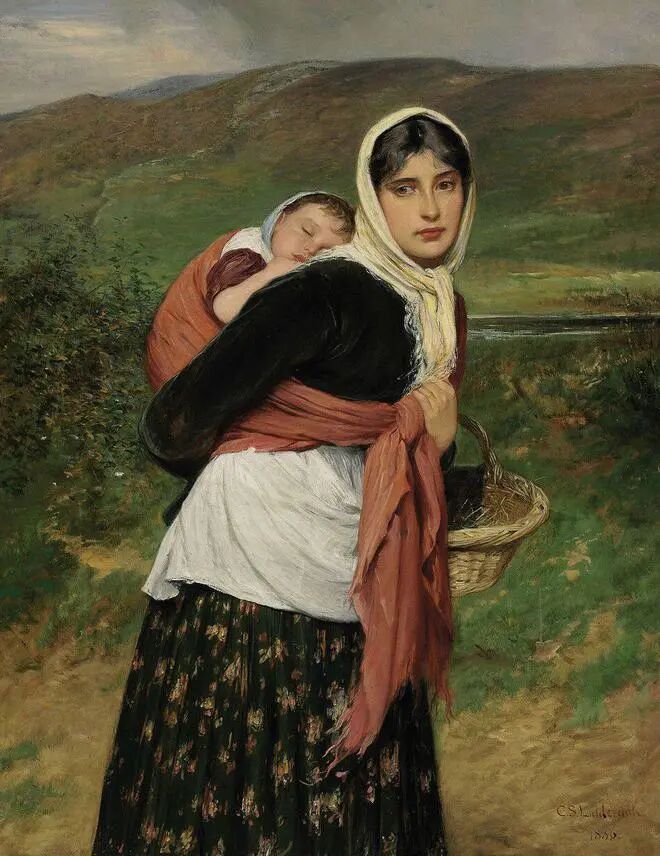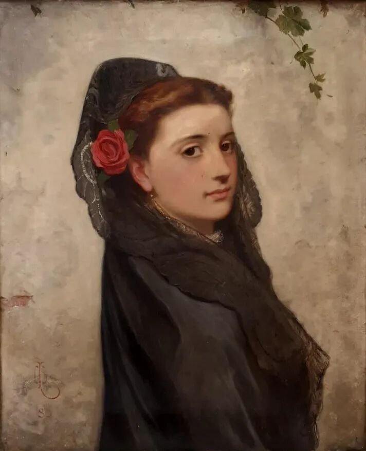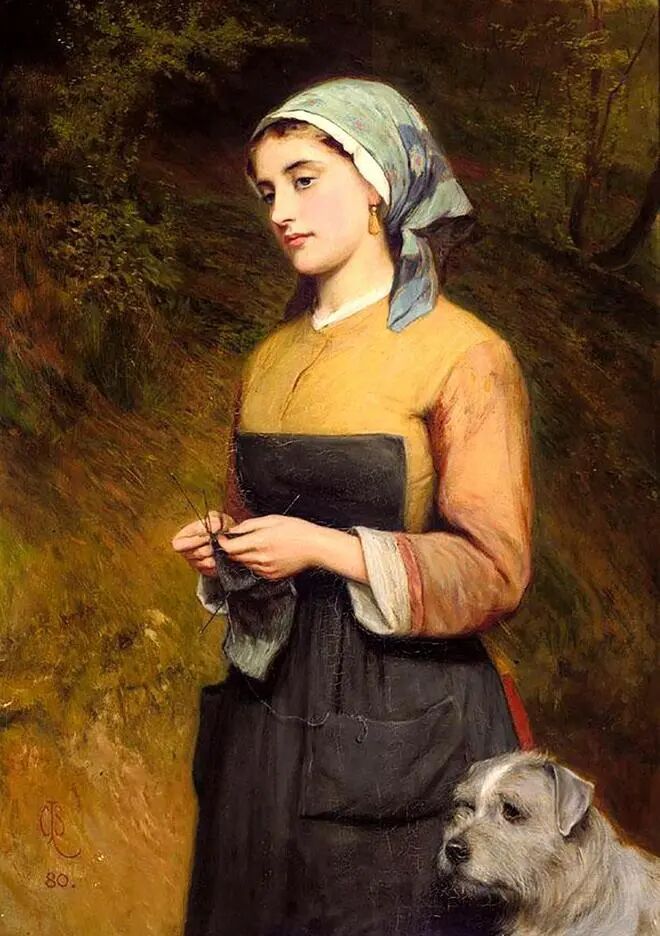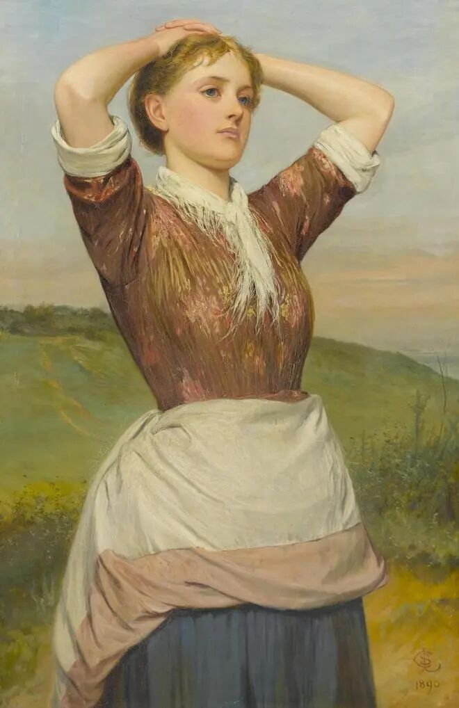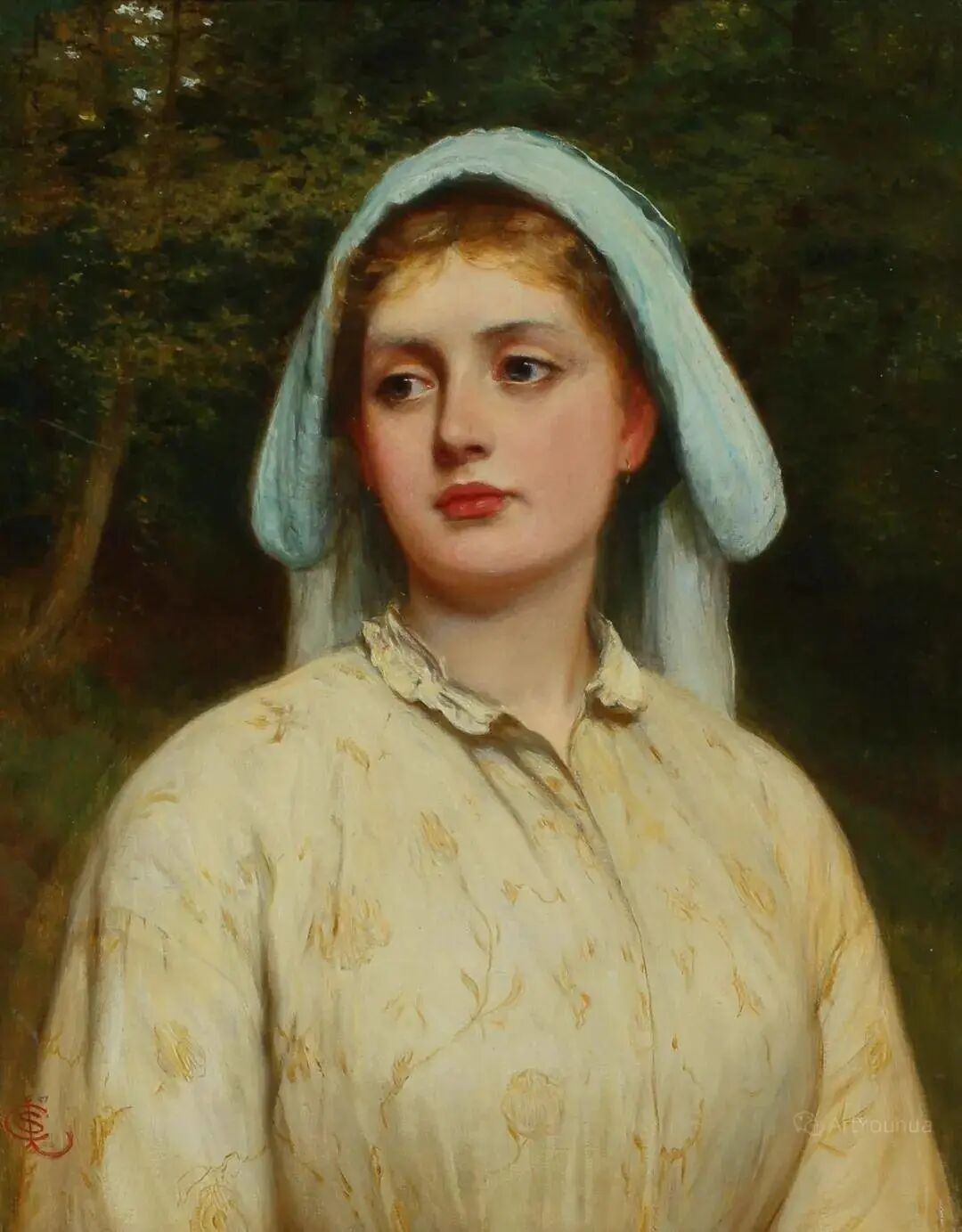 这幅少女画作是英国艺术家Charles Sillem Lidderdale(查尔斯·斯莱姆·利德代尔 ,1830-1895)。他的画作以俏丽可爱的年轻女子为主,其中很多是吉普赛女孩。
