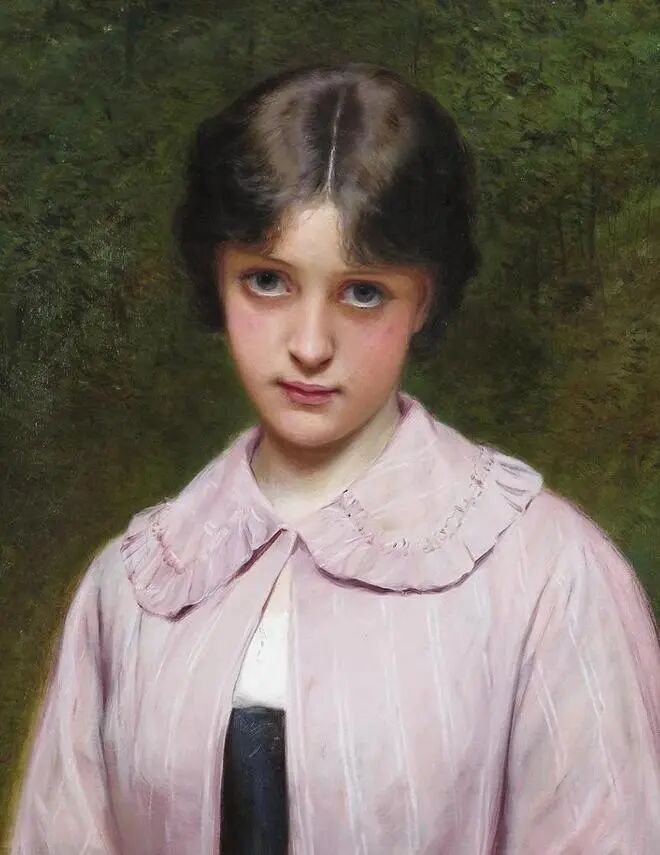 不知道诸君第一眼看到这位画中的少女时,有没有被惊艳到?!这扑面而来的少女气息顿时令我想起了唐代诗人杜牧在其《赠别》里的名句:“娉娉袅袅十三余,豆蔻梢头二月初”。诗人用二月里含苞待放,初现梢头的豆蔻花,来形容十三四岁的少女姿态袅娜与轻盈美好。美好的诗句与这美好的画作,我想起了初中的女同桌……