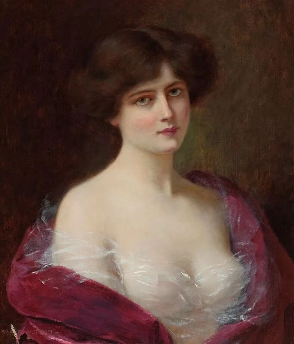 Abbey Alston的肖像画以女性为主要题材,属于典型的古典主义风格,注重明暗对比,背景深沉,但主题用色柔和。