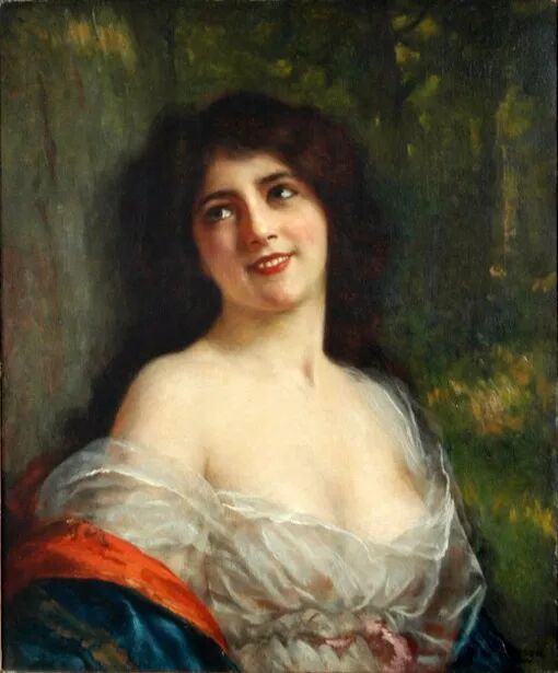他在画中表现出女子丰腴优美的形体,妩媚多姿的形象,高贵典雅的气质,具有动人心扉的魅力。画中女子肤如凝脂,体态柔和,眉目含情,真的是微微一笑,倾国倾城!