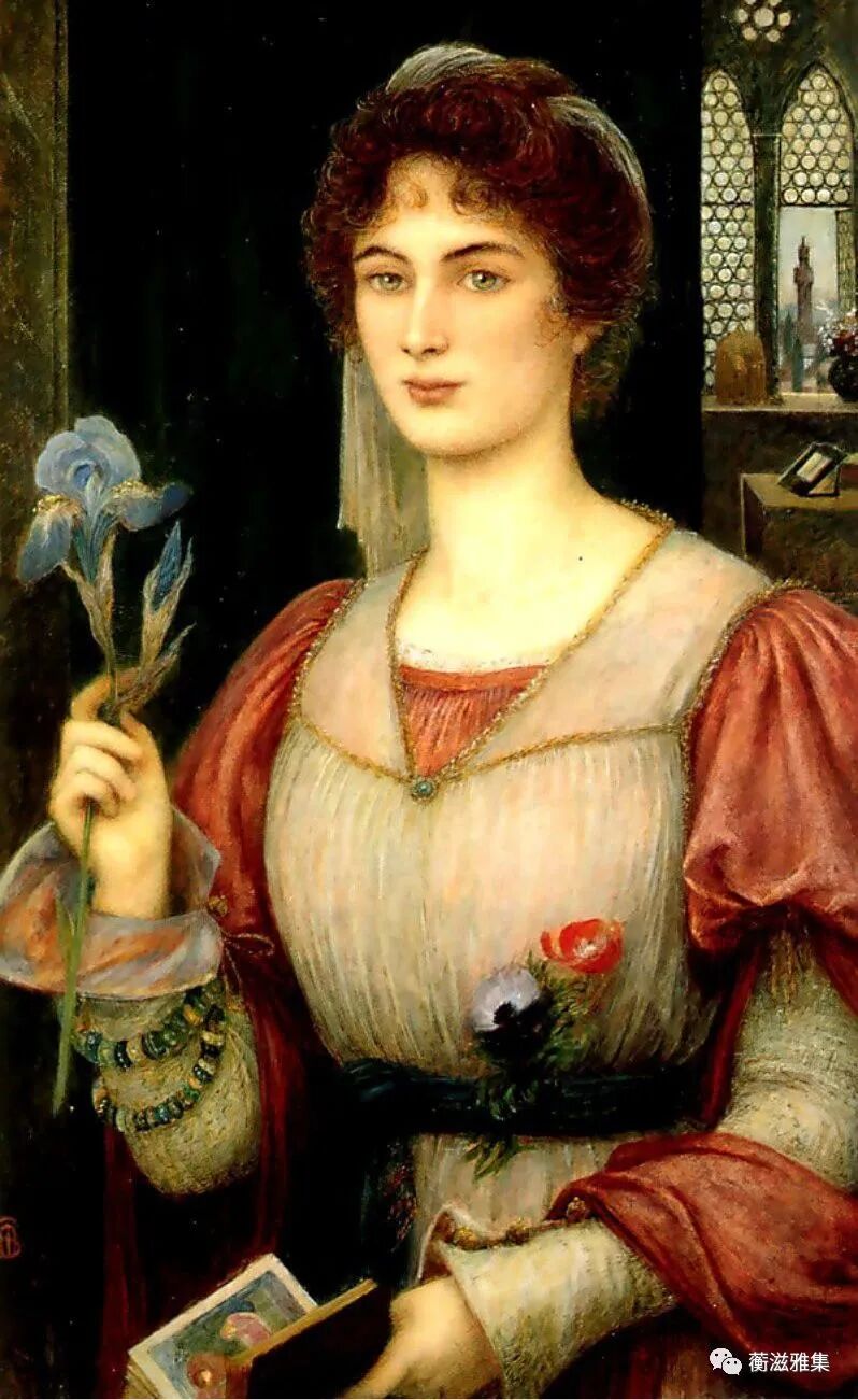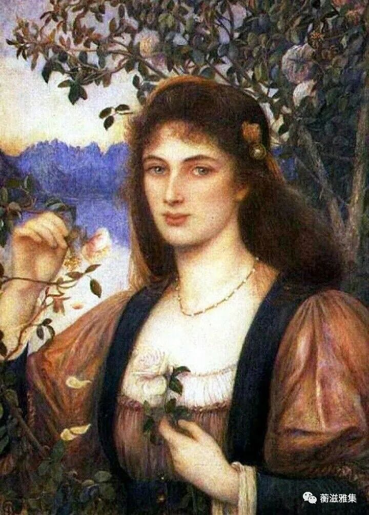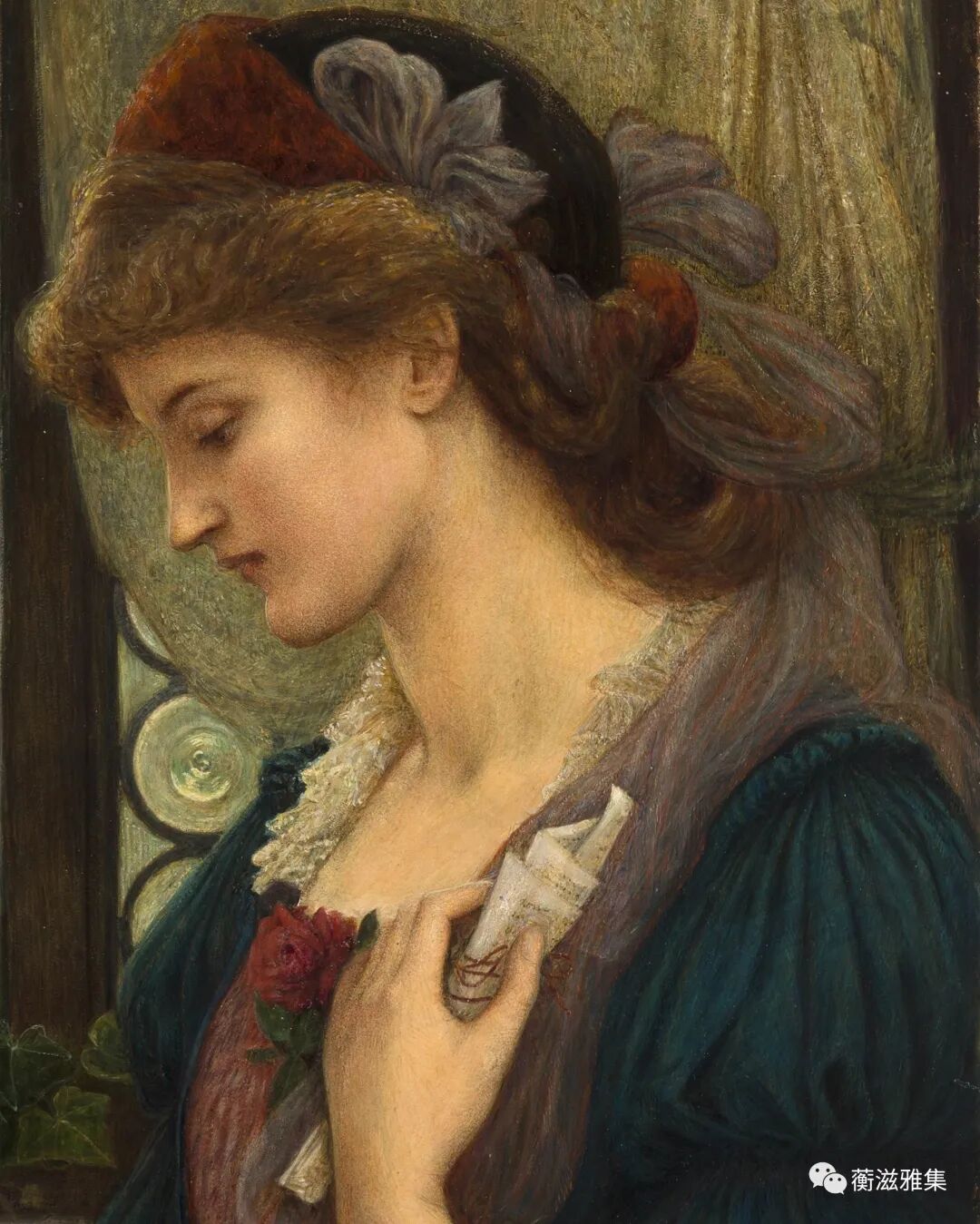 Marie Spartali Stillman喜欢以经典文学作品为主题,创作女性肖像及意大利风景画。她师从英国维多利亚时代著名的艺术家Ford Madox Brown。她采用了一种巧妙的混合媒介方法,将水粉和水彩结合在一起,画面纹理丰富而微妙。