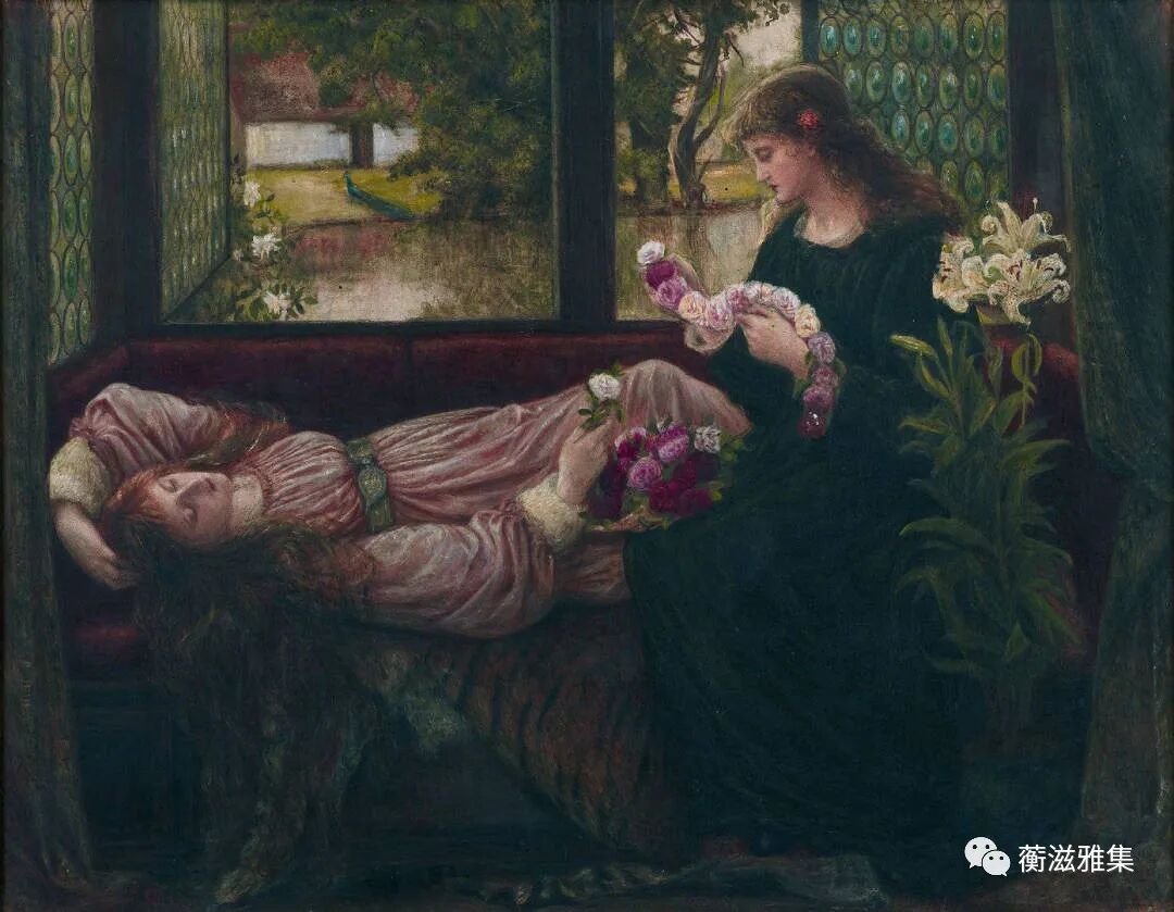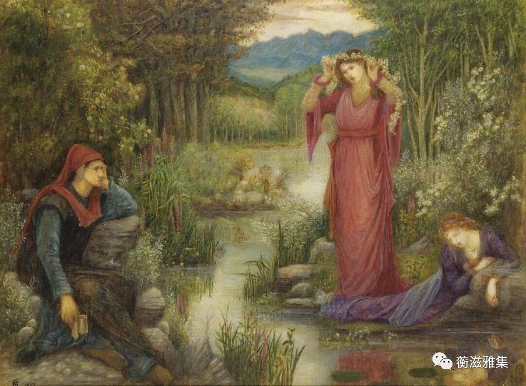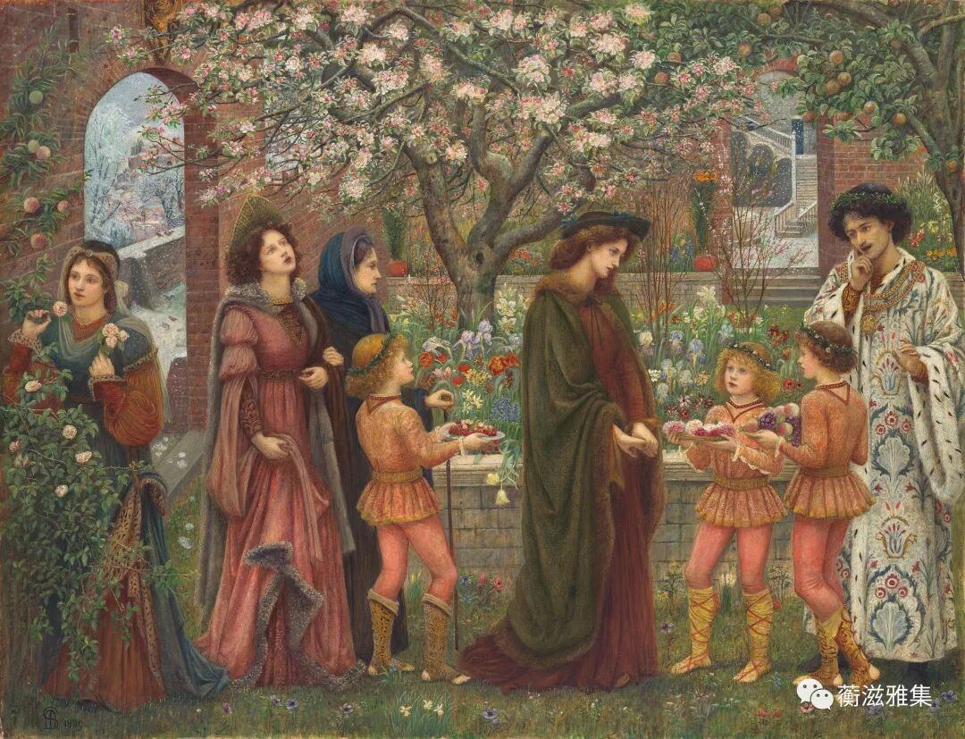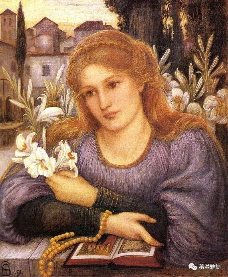 Marie Spartali Stillman喜欢以经典文学作品为主题,创作女性肖像及意大利风景画。她师从英国维多利亚时代著名的艺术家Ford Madox Brown。她采用了一种巧妙的混合媒介方法,将水粉和水彩结合在一起,画面纹理丰富而微妙。