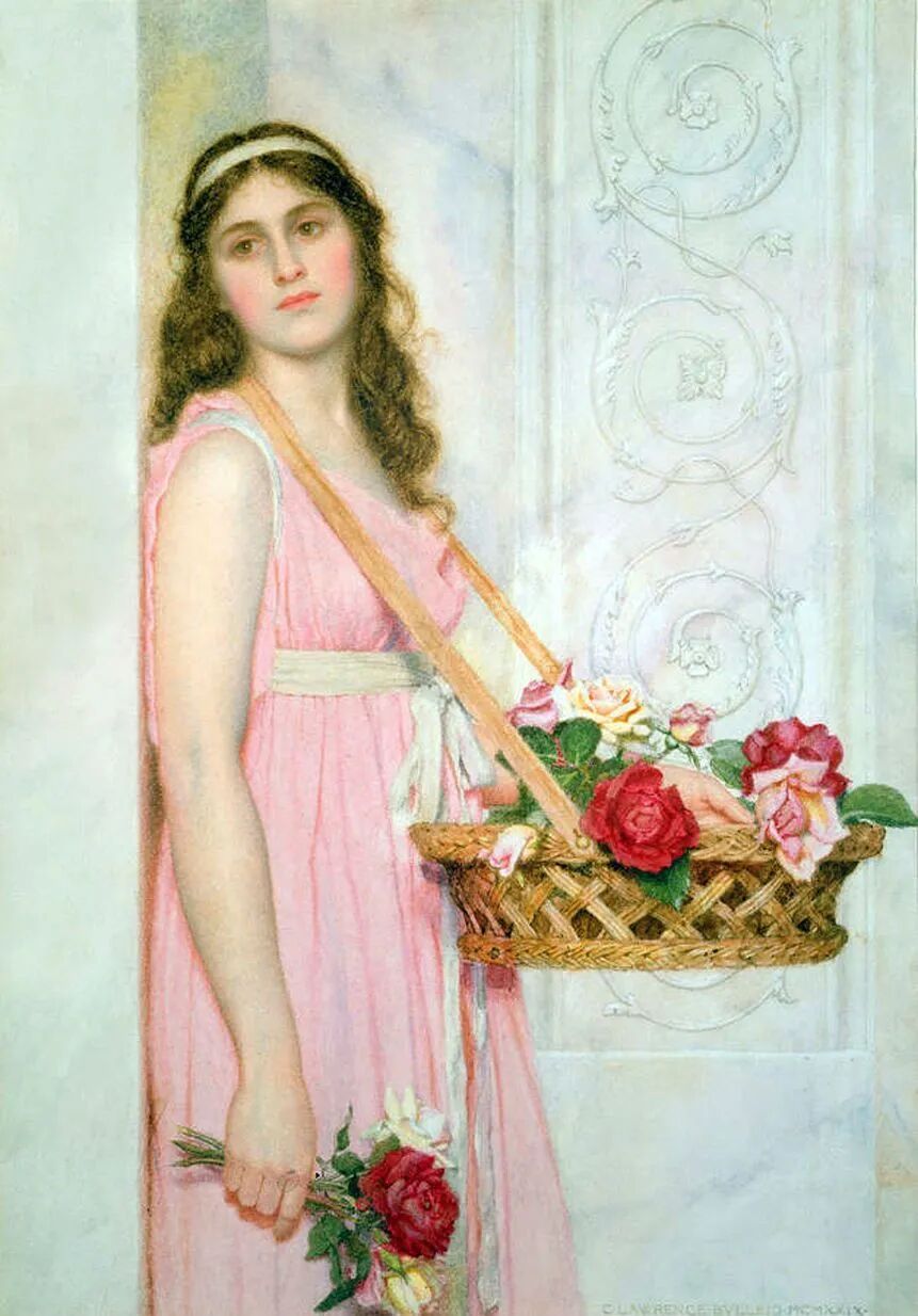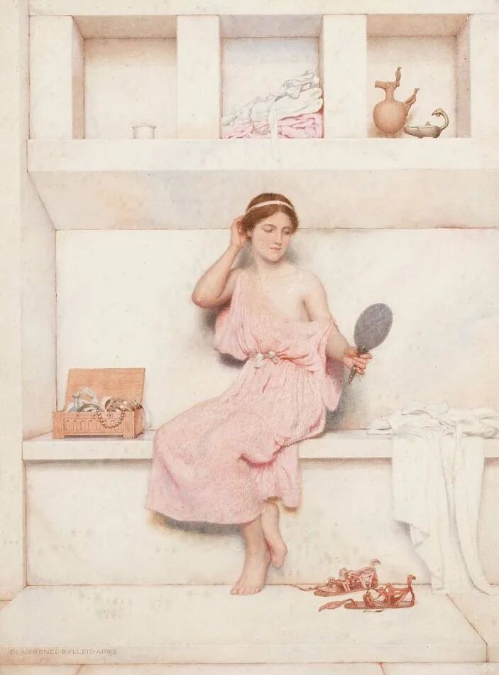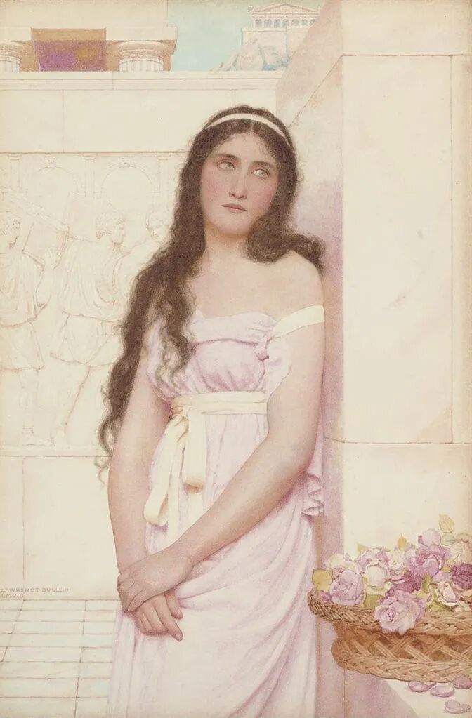 George Lawrence Bulleid对古典主义有着浓厚的兴趣,营造一出出关于古老时光的浪漫想象。他擅长水彩画作,其作品氛围静谧,人物带有沉思忧郁的气质,画作常常设定在古典的建筑场景。艺术家在1889年成为了皇家水彩画协会的会员。