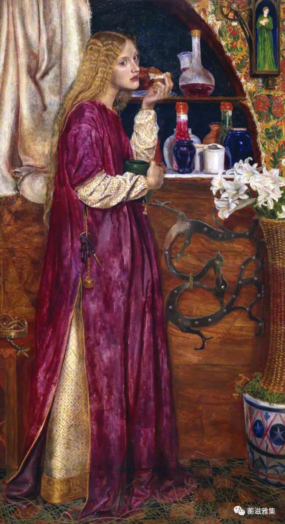 从上面的画作,以及艺术家的生平可以看出,Valentine Cameron Prinsep是一位拉斐尔前派的艺术家。这幅画作名为《女巫美狄亚》是一幅典型的拉斐尔前派风格的作品。