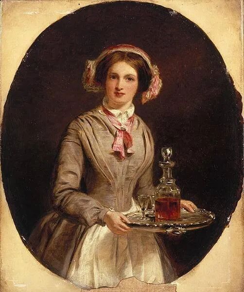 下面这三幅端酒的侍女图是蘅滋君很喜欢的作品。人常说,读书人的乐事之一是“红袖添香夜读书”。那要是再来一杯红酒,再凄冷孤单的夜也会变得温馨起来。如果你是一位女士的话,估计换成“帅哥,上酒”,那也是美妙的赏心乐事啊。