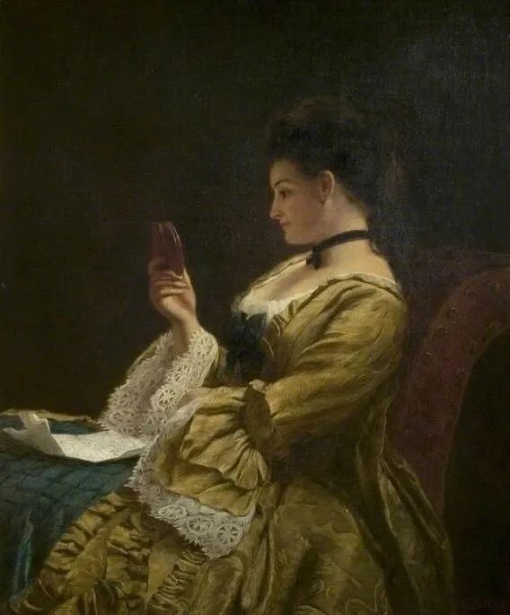 《The Miniature(缩影)》1883年,布面油画,46.3cm × 38cm英国新沃克博物馆和美术馆藏