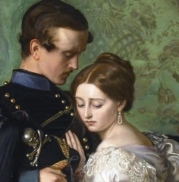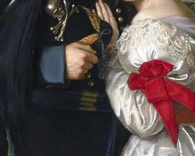 在画史上,这幅《穿黑衣的布伦瑞克(The Black Brunswicker)》又被称为“滑铁卢之战的前夜”,它不但捕捉到了情侣间令人悲伤动情的时刻,丰富的画面表现人物的内心挣扎和残酷的现实环境,还具有历史和现实意义。