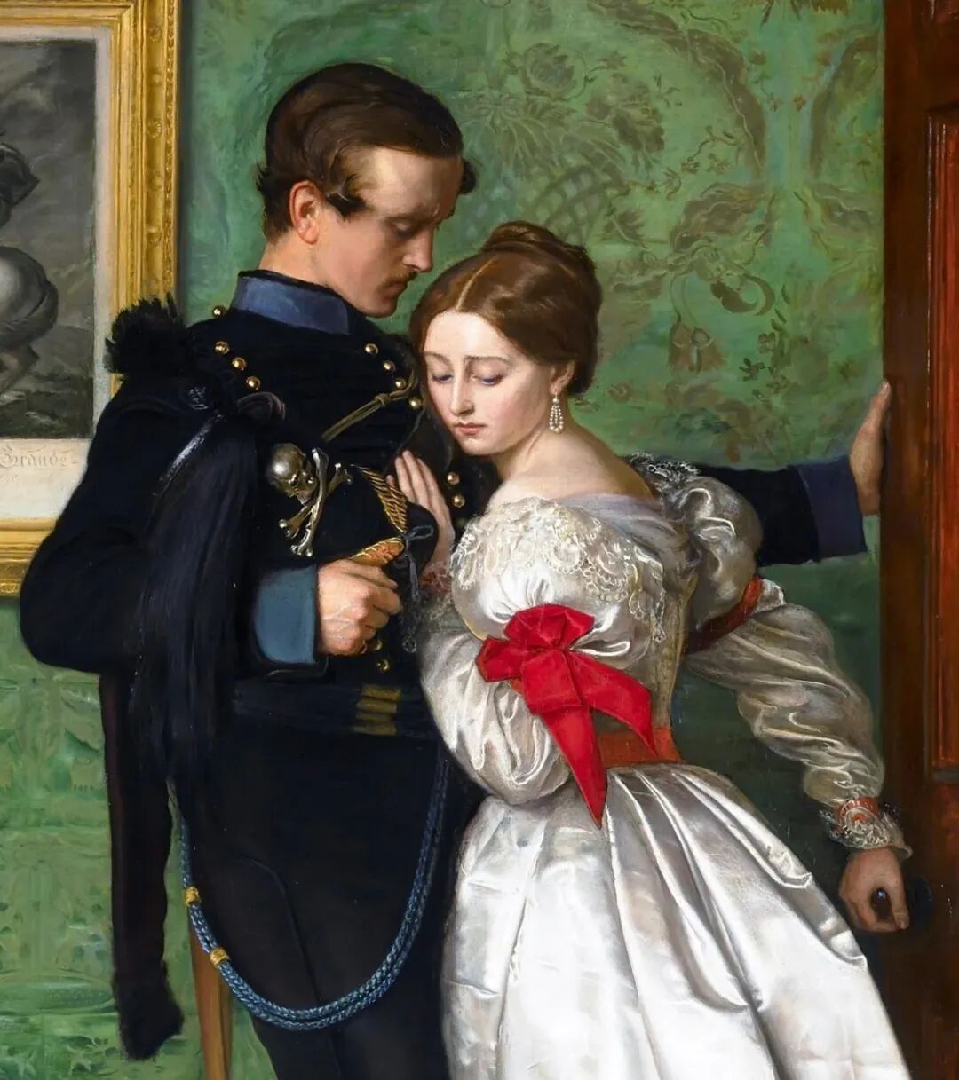 艺术家以高超的写实、华丽的色彩、精妙的细节、 用画笔演绎一出维多利亚时期贵族式的“多情自古伤离别”。
