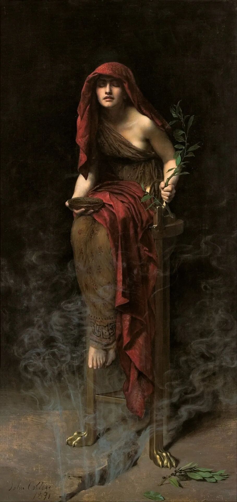 《Priestess of Delphi(德尔菲女祭司)》1891年,布面油画,160 × 80cm澳大利亚南澳美术馆藏