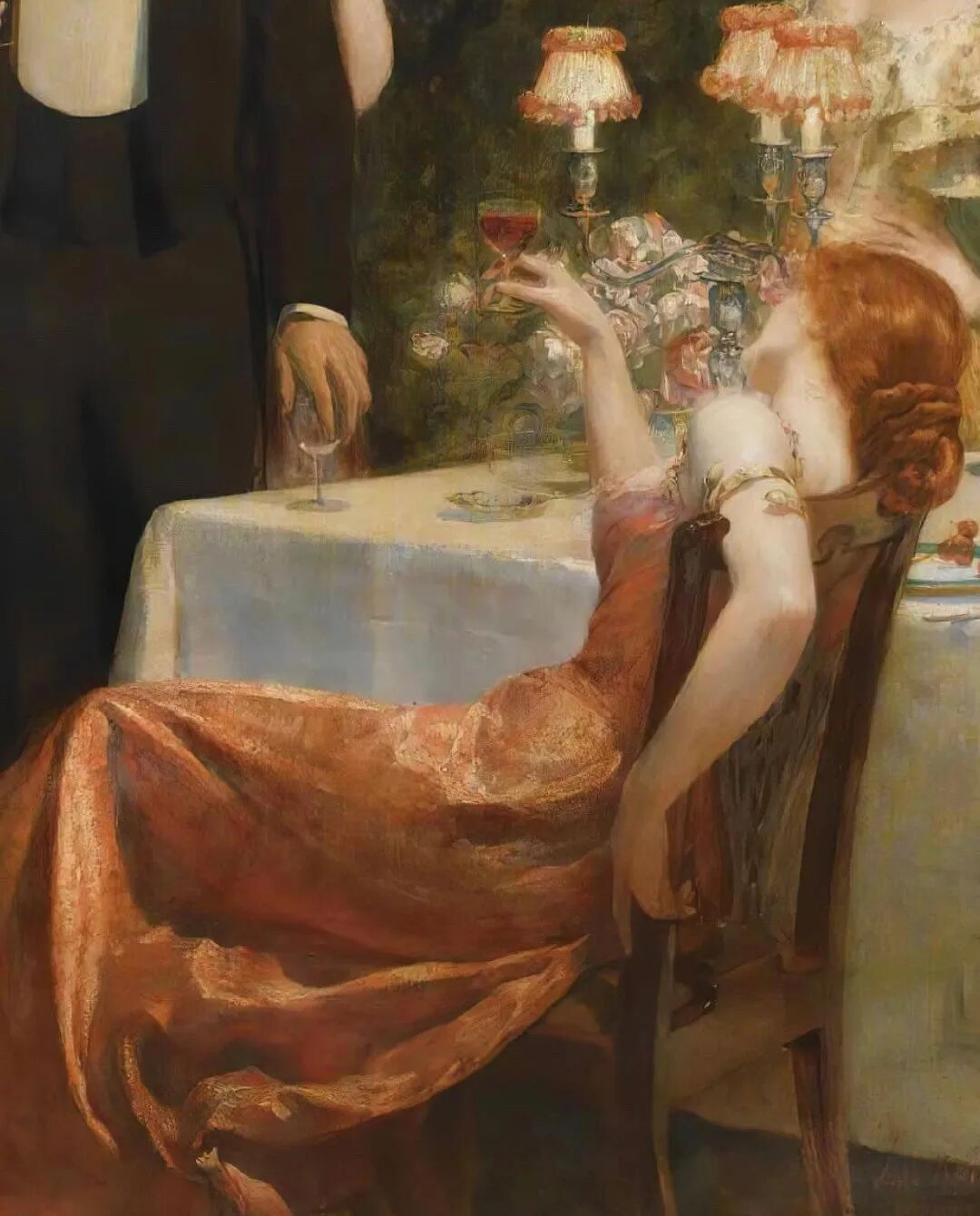 《A Glass of Wine with Caesar Borgia(一杯凯撒·博吉亚葡萄酒)》1893年,140 × 240cm英国科尔切斯特和伊普斯维奇博物馆藏