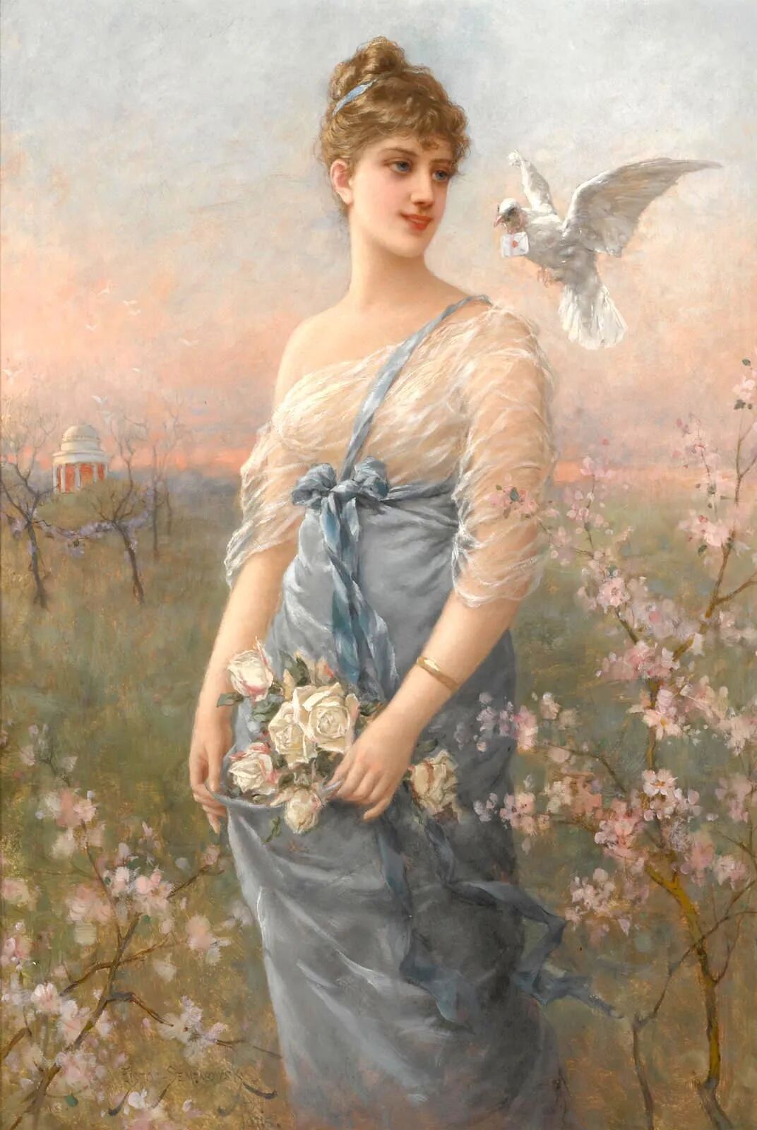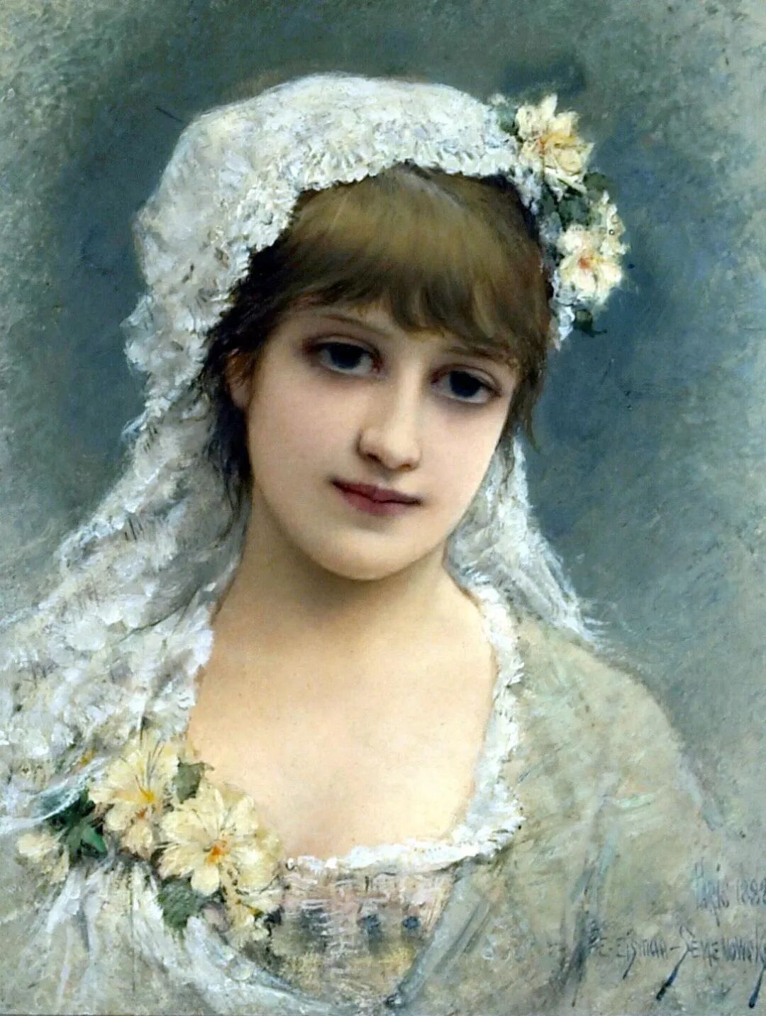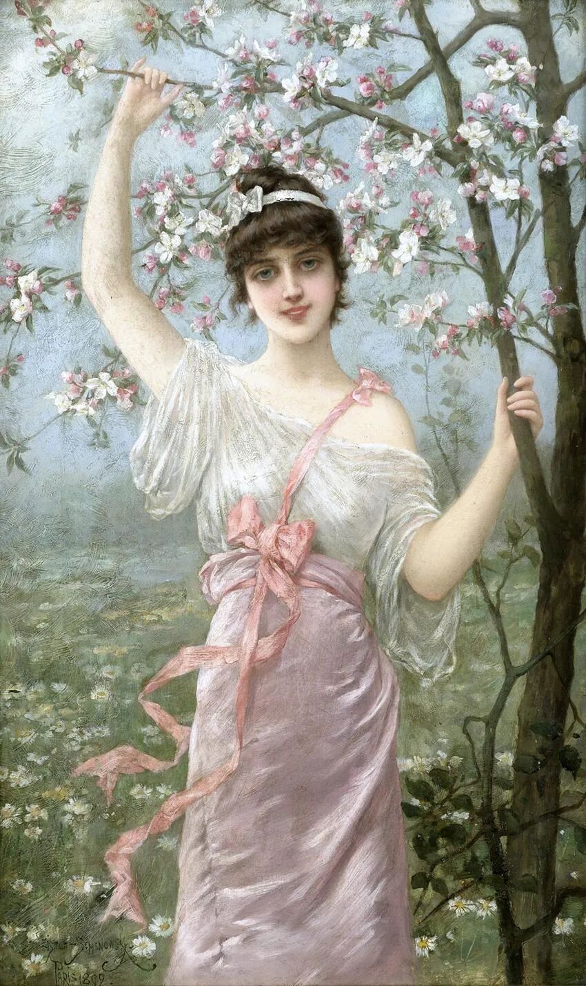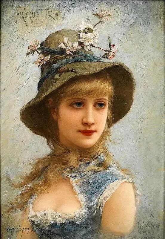 Emile Eisman Semenowsky(埃米尔·埃斯曼·希马诺夫斯基,1857-1911年)是一位出生于波兰的画家。但他一生的大部分时间都是在法国度过的。他的人物画作品里描绘的,大多是法国上流社会富家贵妇小姐们。他画肖像画,也画生活场景的风俗画。