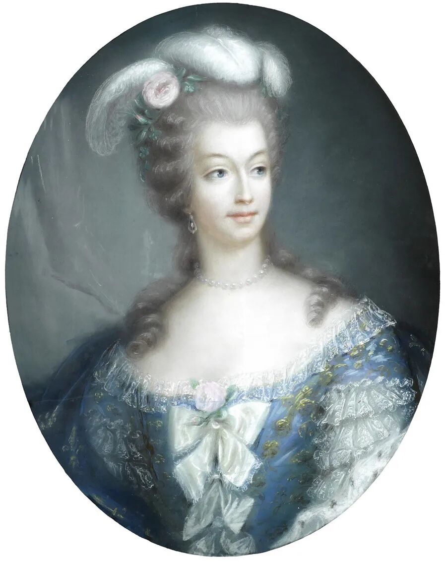 《Portrait of a lady, thought to be Marie Antoinette in a blue dress and a feather headdress》