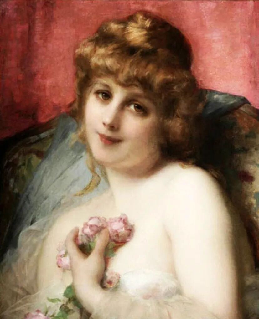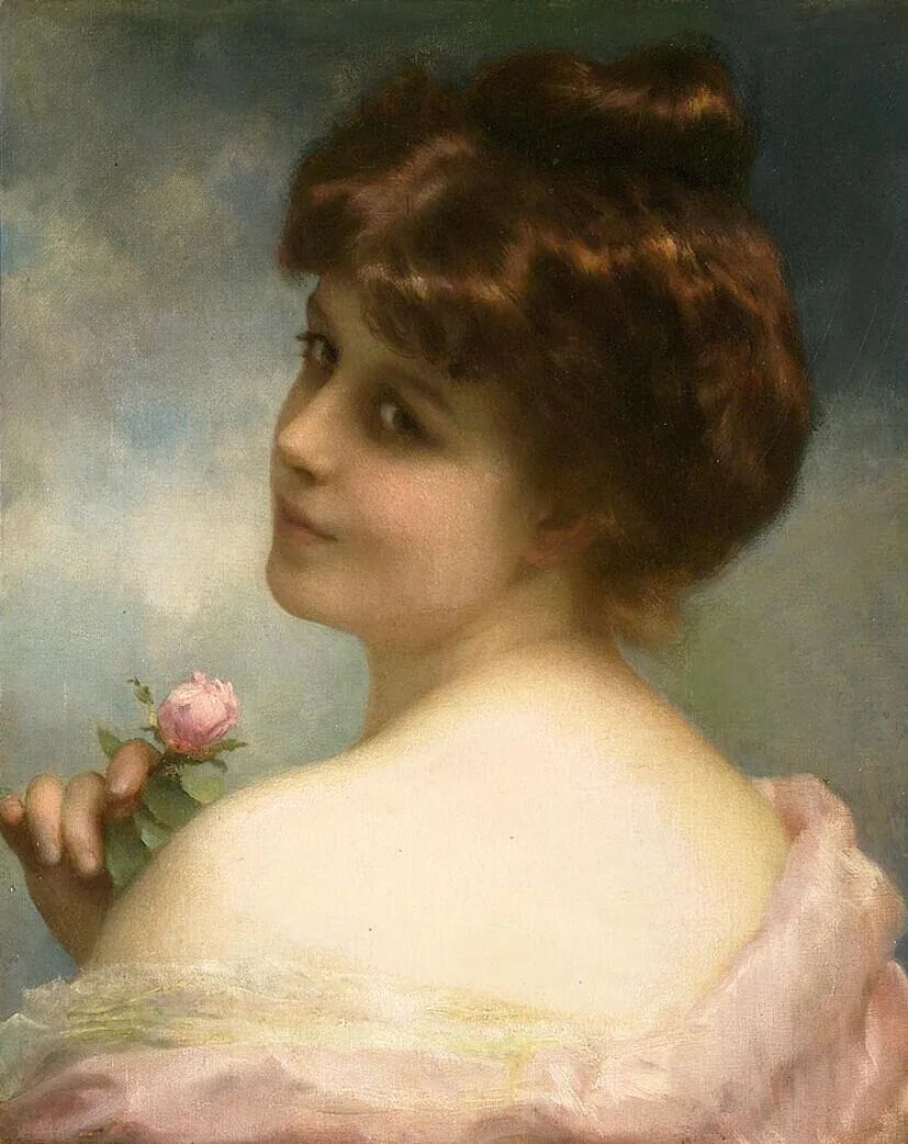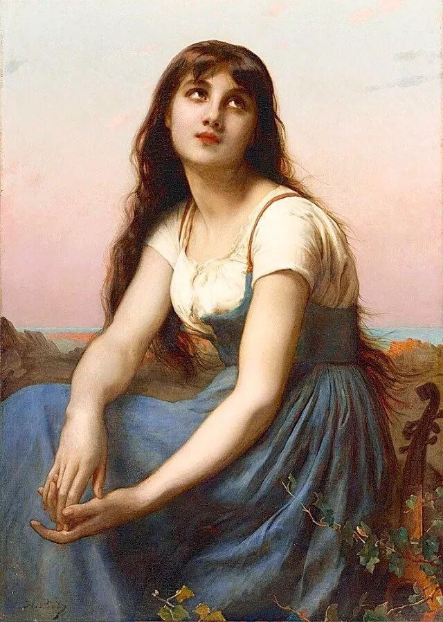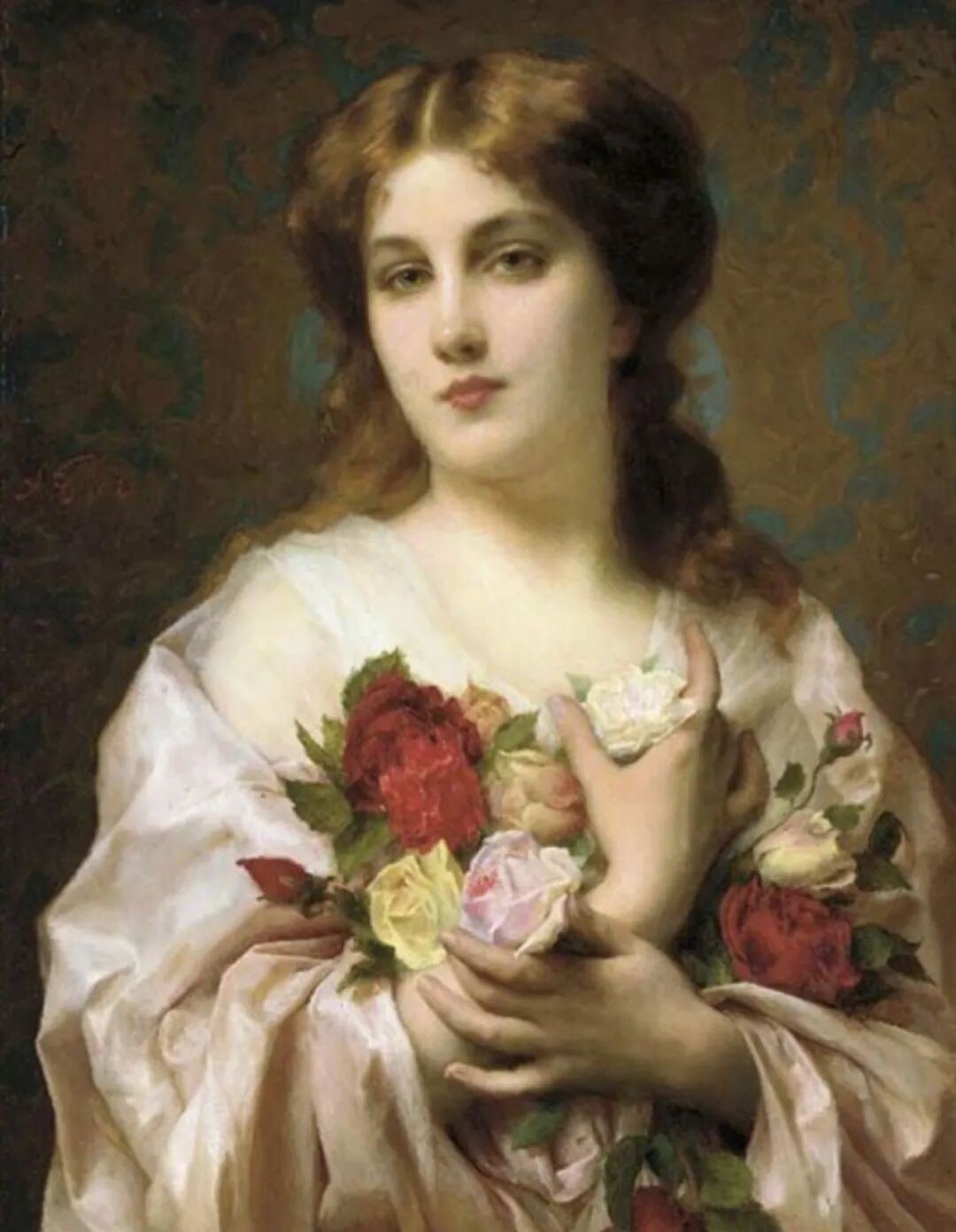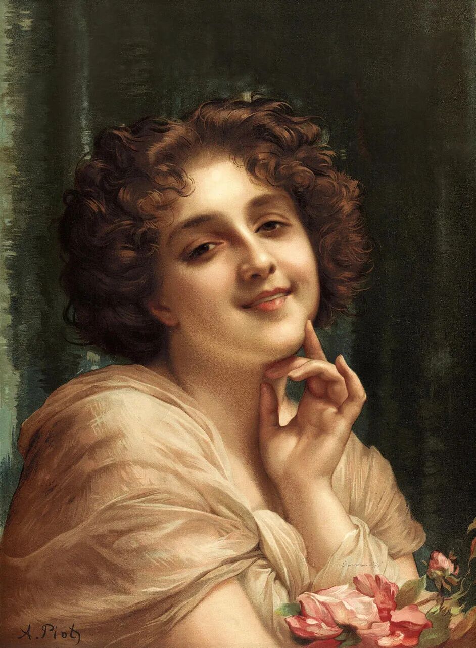 法国艺术家Étienne Adolphe Piot(艾蒂安·阿道夫·皮奥特,约1825 – 1910)的作品。从1850年到1909年,Étienne Adolphe Piot多次在巴黎的沙龙中展出作品,并在1883年成为了法国艺术家协会会员。他的肖像画背景多为深色,主题以年轻女子和儿童为主,人物优雅生动,天真无邪。