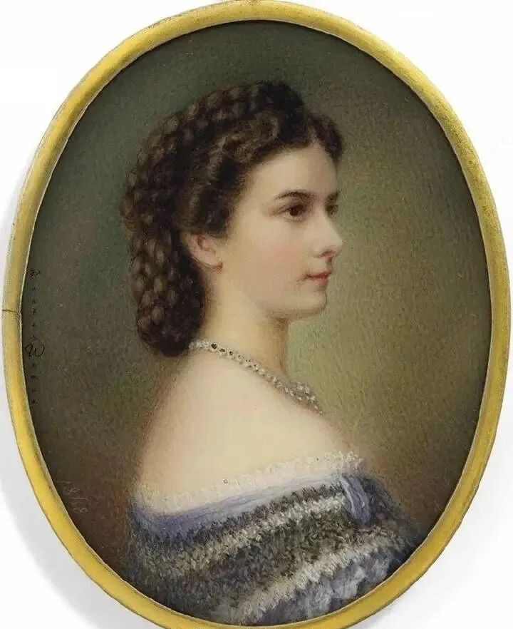 风华绝代的茜茜公主。这幅画有点模糊,但难掩其姣好的容颜。