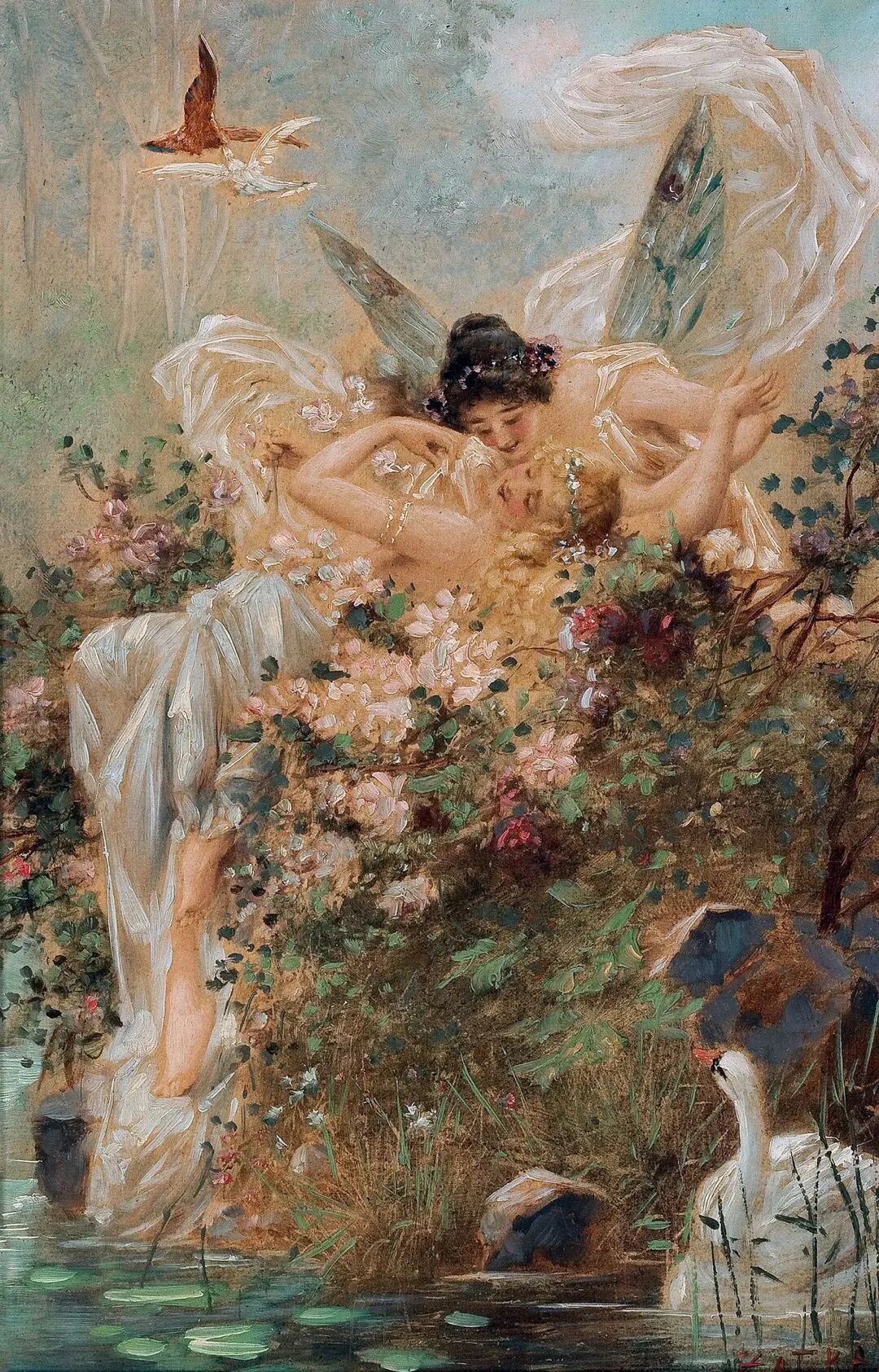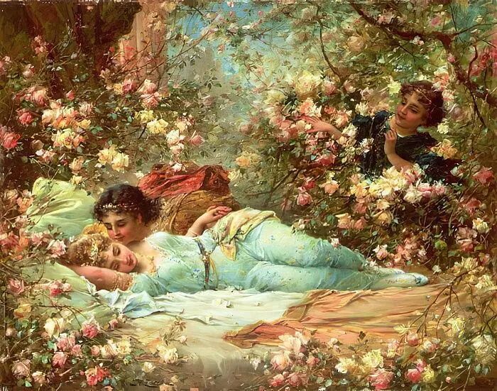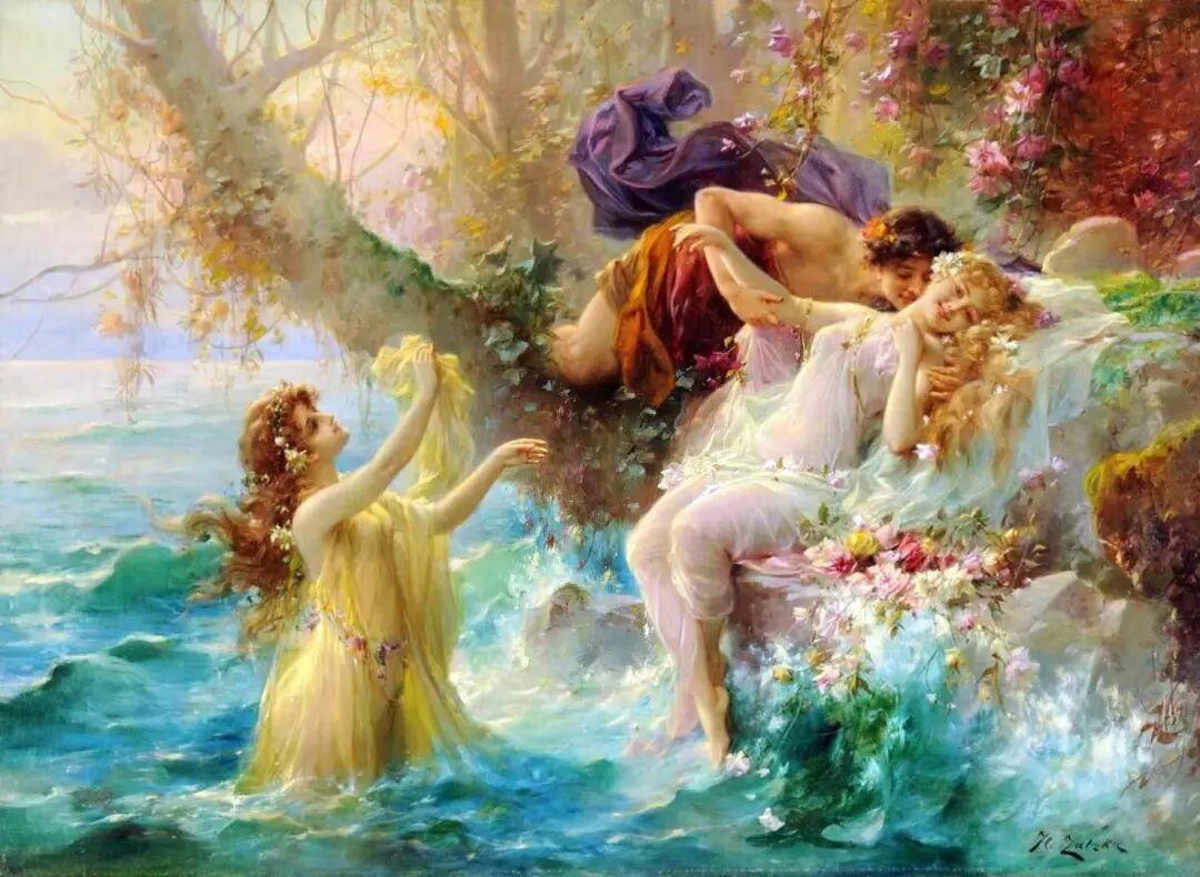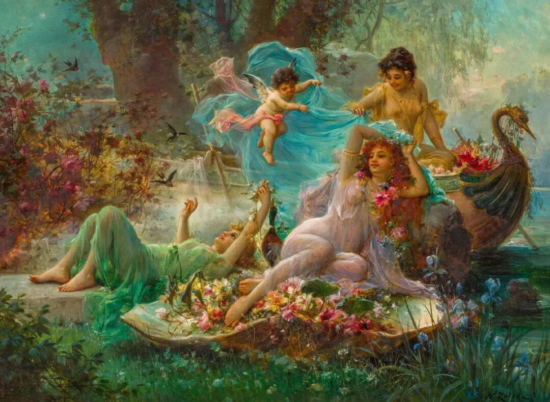 欣赏Hans Zatzka,我总是感觉置身于“极乐园”。画里描绘的一切显得那么美好,却又不太真实。带了一种视觉上的享受的同时,又有一点点虚幻的失落感!