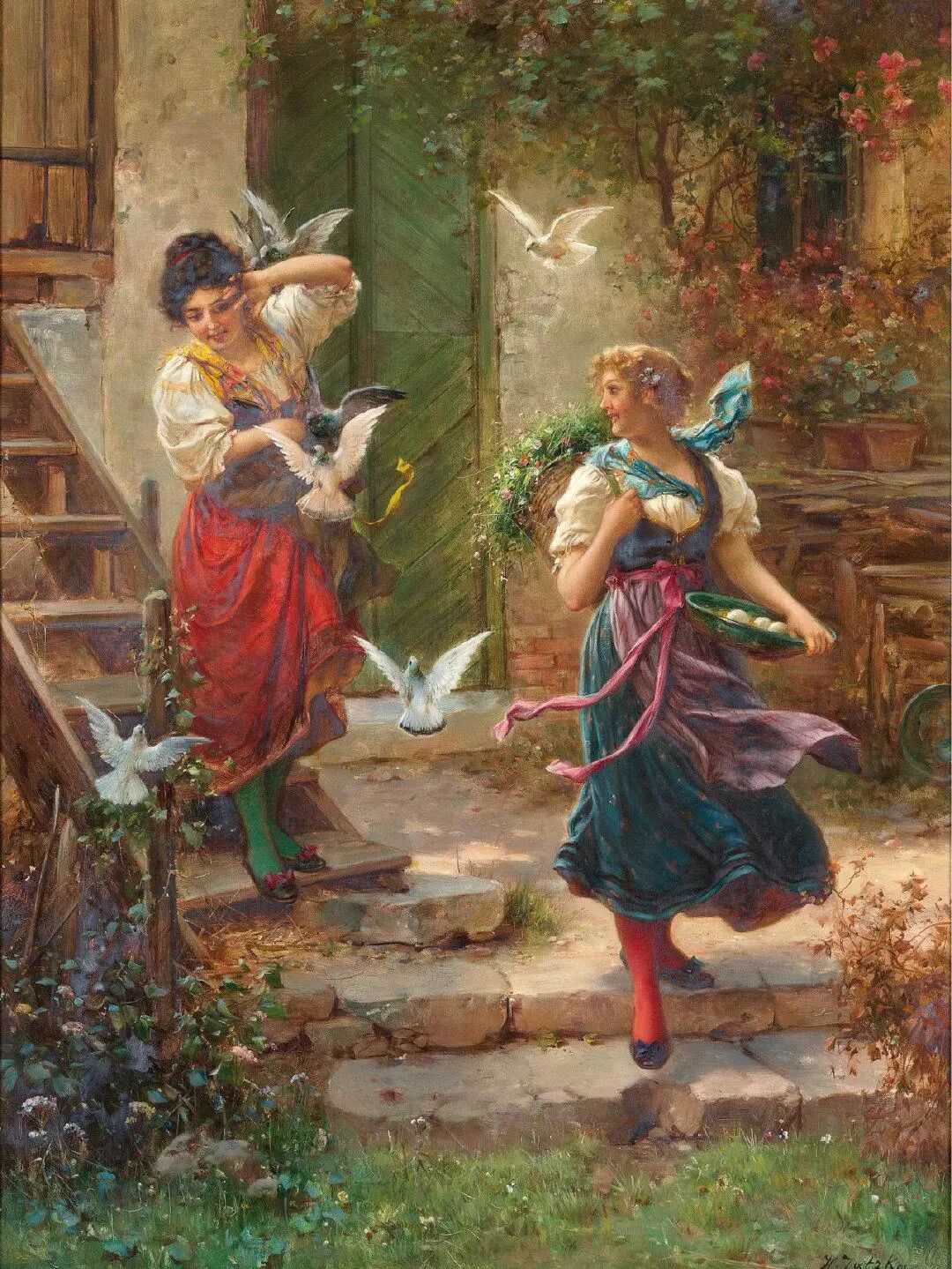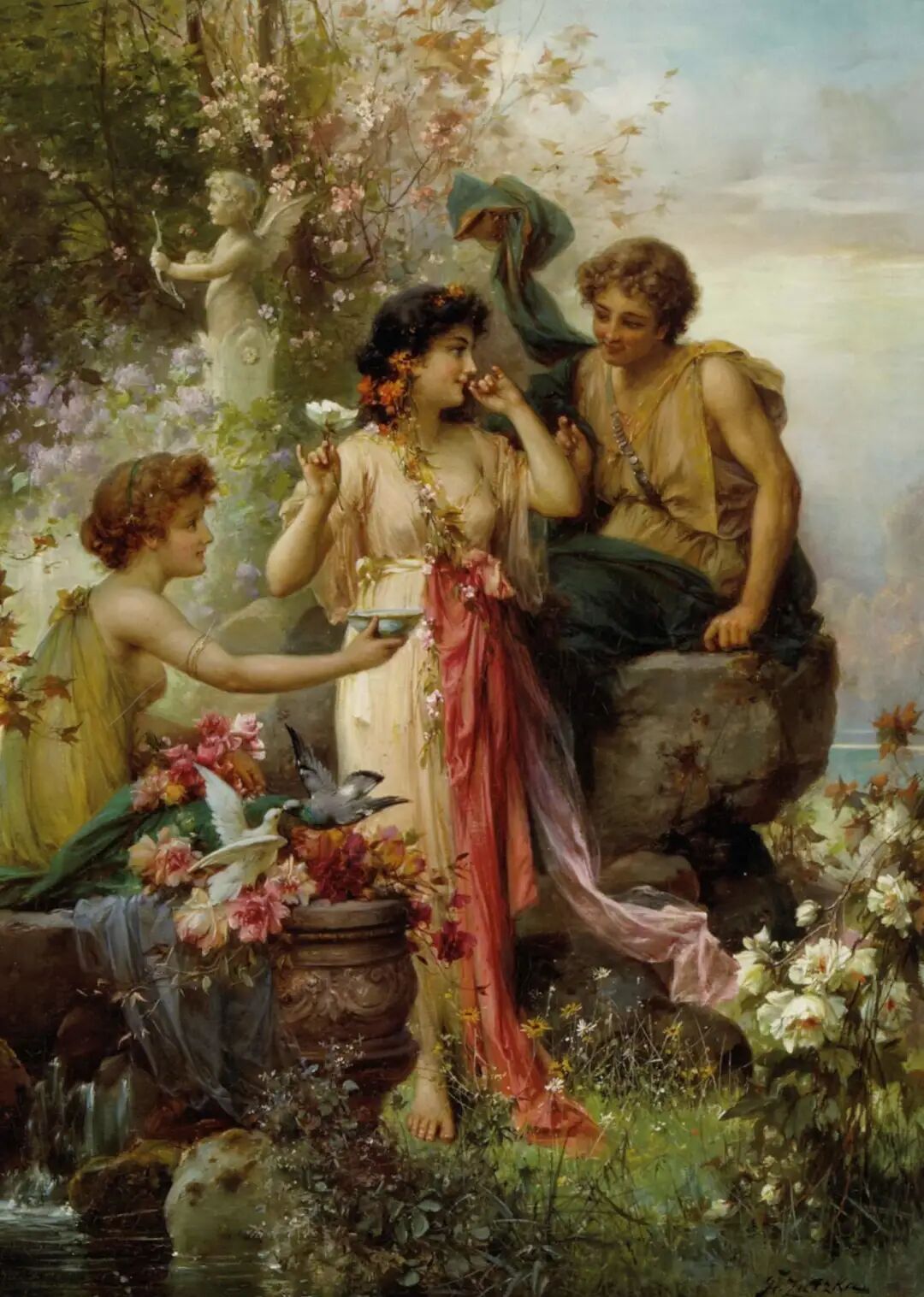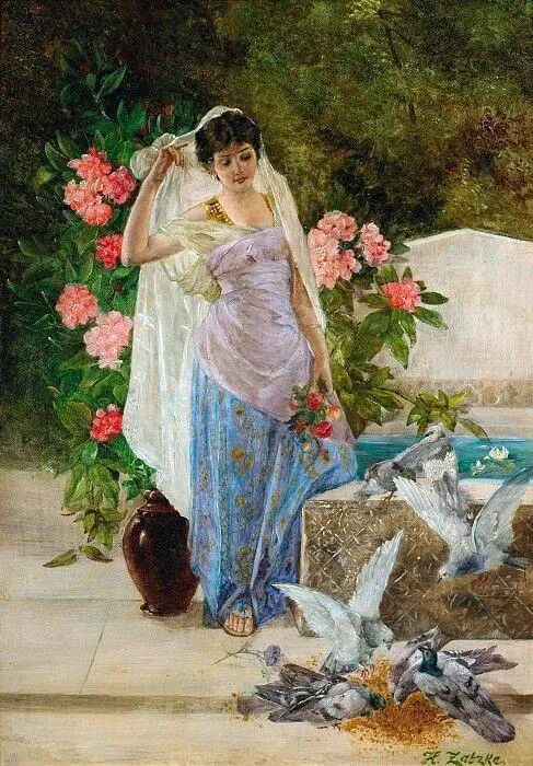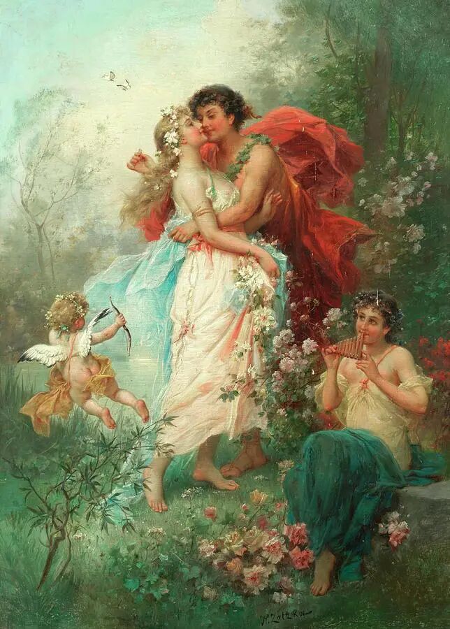 欣赏Hans Zatzka,我总是感觉置身于“极乐园”。画里描绘的一切显得那么美好,却又不太真实。带了一种视觉上的享受的同时,又有一点点虚幻的失落感!