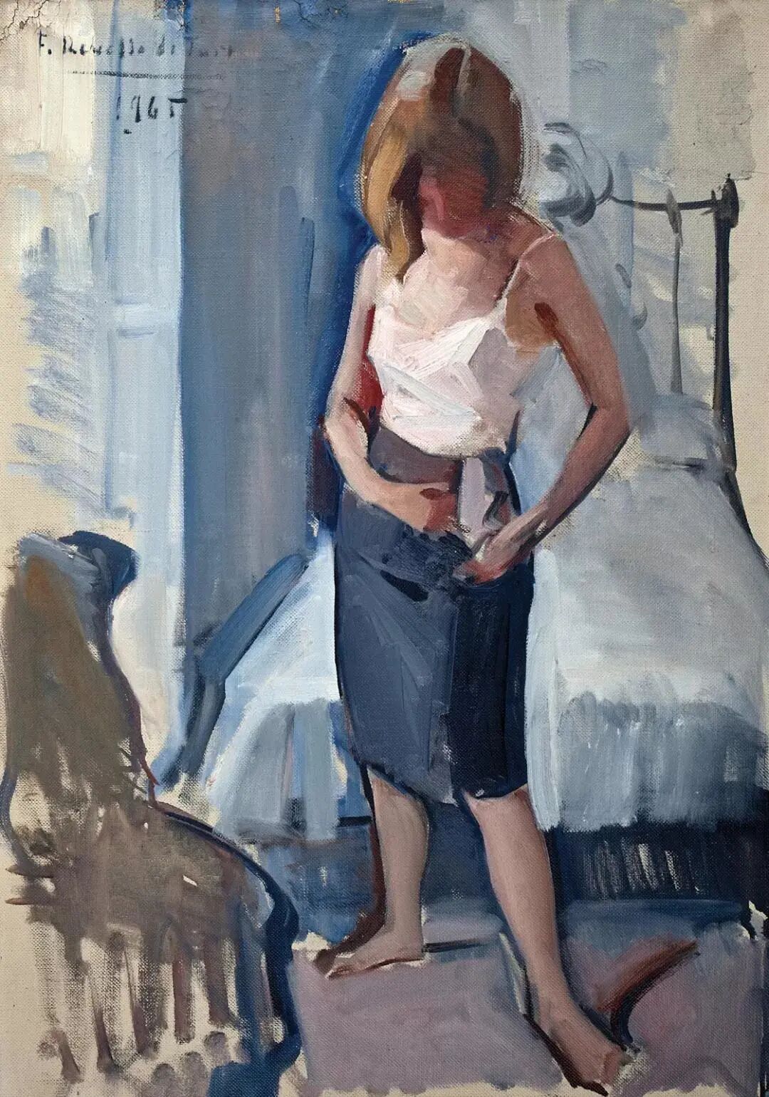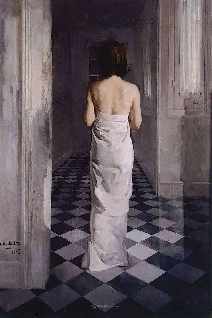 在Felix Revello de Toro的人物画作品之中,小编认为最出彩的是下面这些以女性的“背部”作为主题的系列画作。这些画作中,女性或身穿白色衣物,或裸露出肌肤,女性背部那种独有的线条和平坦之感,呈现在画中。