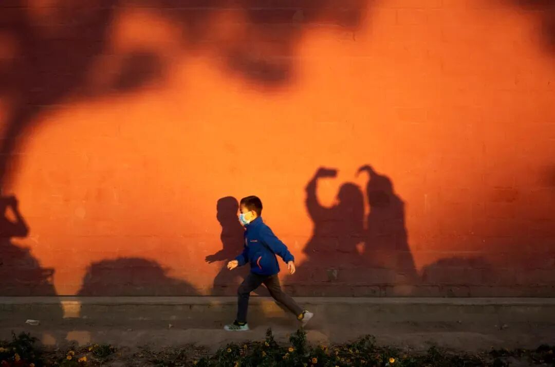 街头闪过鲜艳的橘红
