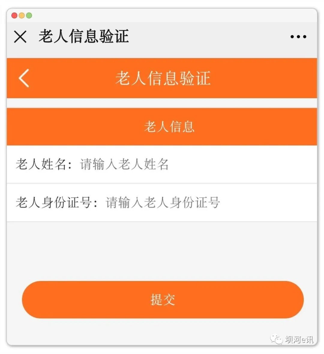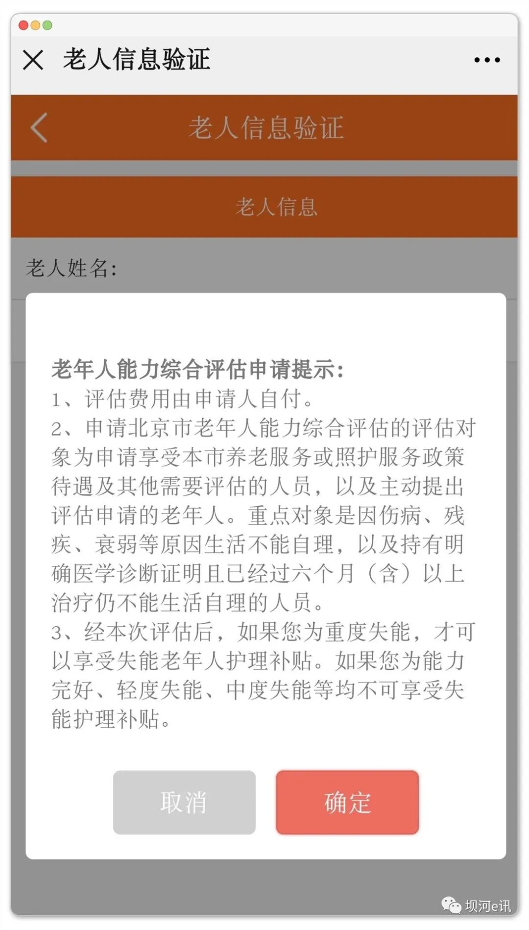 进入页面填写老人的姓名以及身份正好;(注意:只有北京市户籍60岁及以上的老人才能进行提交)