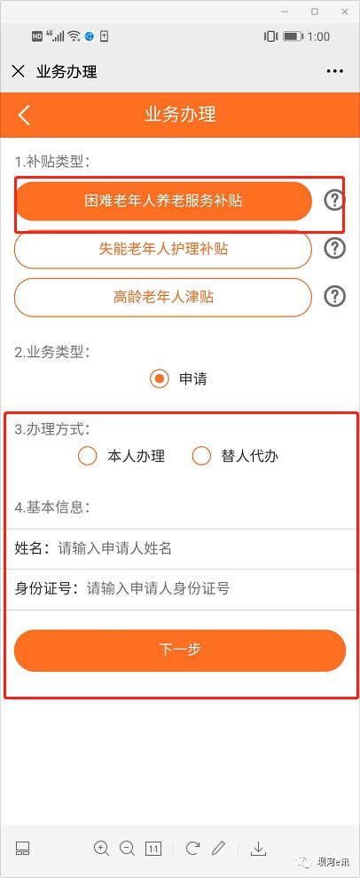 第五步:点击索要办理补贴类型,接着选择办理方式以及填写基本信息。填写完成后点击“下一步”,接着按照提示进行操作即可。