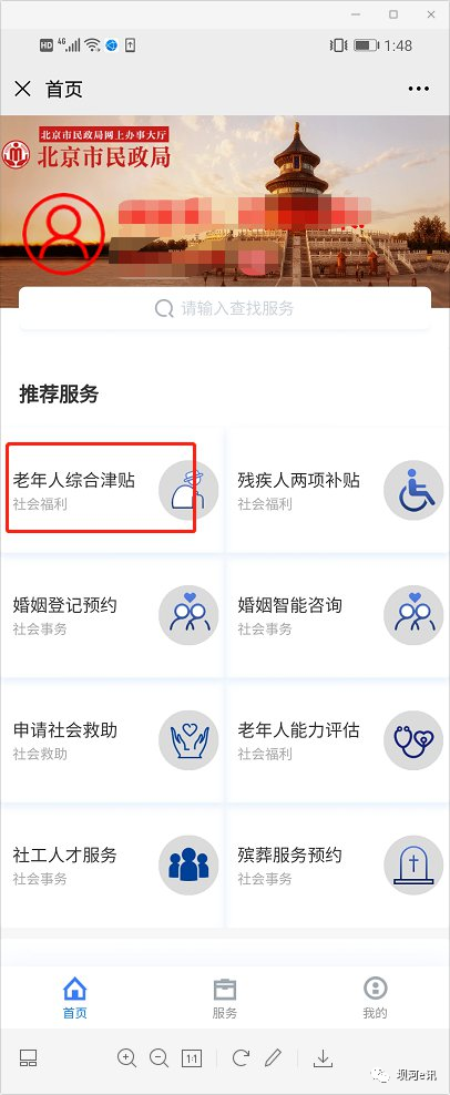 第三步:点击页面内的“老年人综合津贴”,如下图所示;