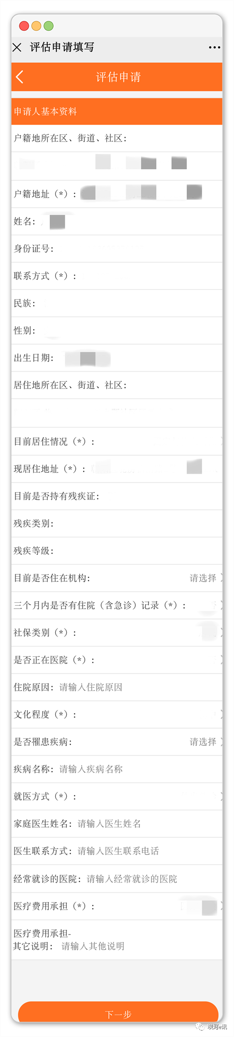 点击下一步之后,会进入如下图中的界面,家里如果是给两个老人申请的,可以点击“新增成员”,如果只是一个,直接点击下一步即可;
